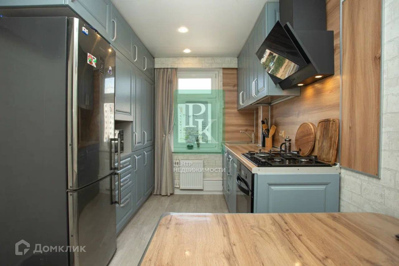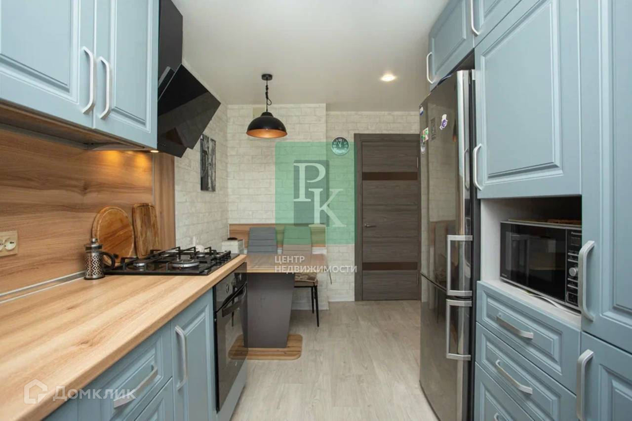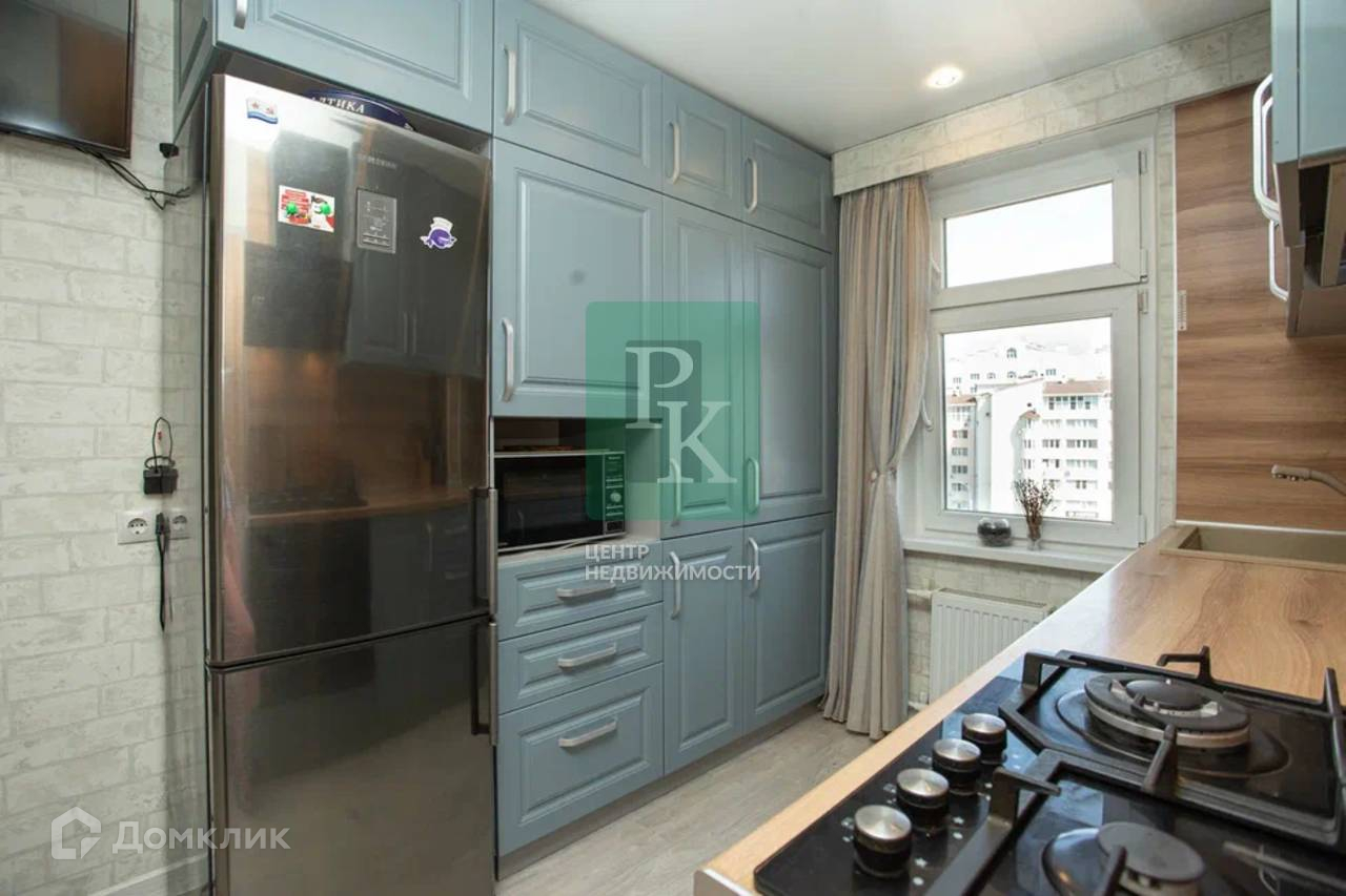 Двухкомнатная квартира 60 м2, на 6/10 этаже дома, с просторной кухней 9,7 м2. Расположена в г. Севастополь, Гагаринский район, шоссе Камышовое, д. 37Б/1.
