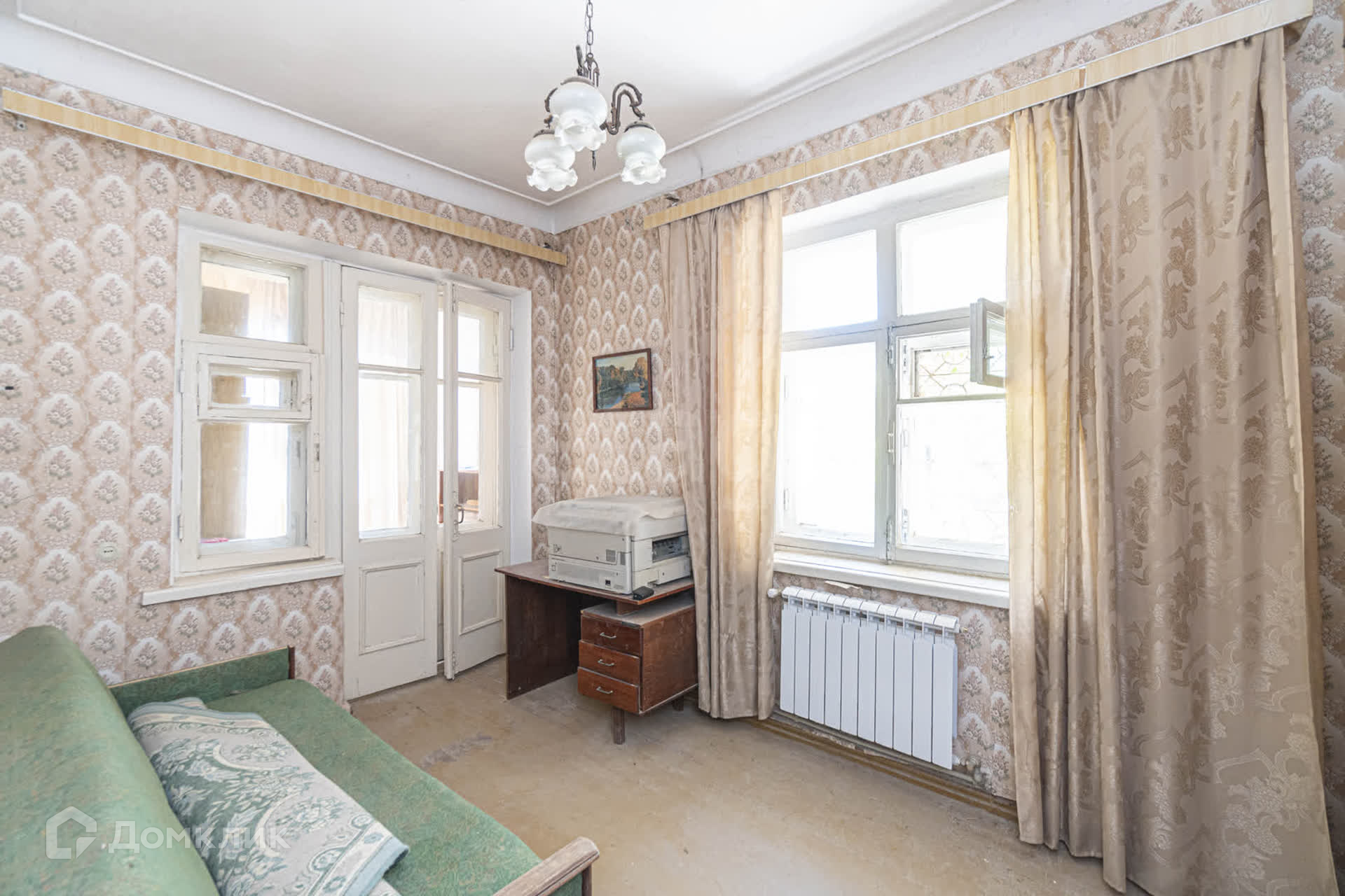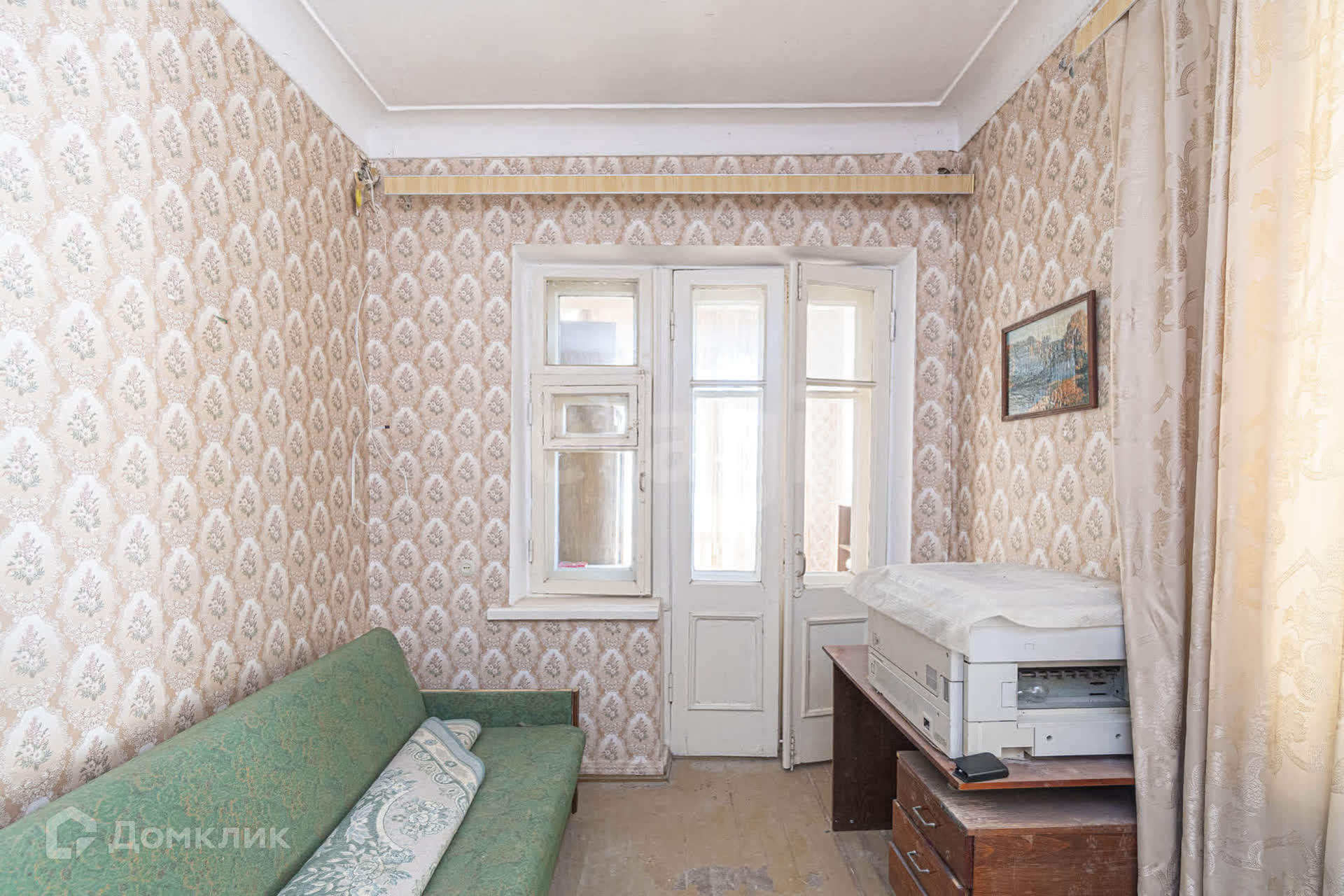 Квартира требует ремонта. Все комнаты просторные, раздельные, с окнами, выходящими как на улицу, так и во внутренний двор.