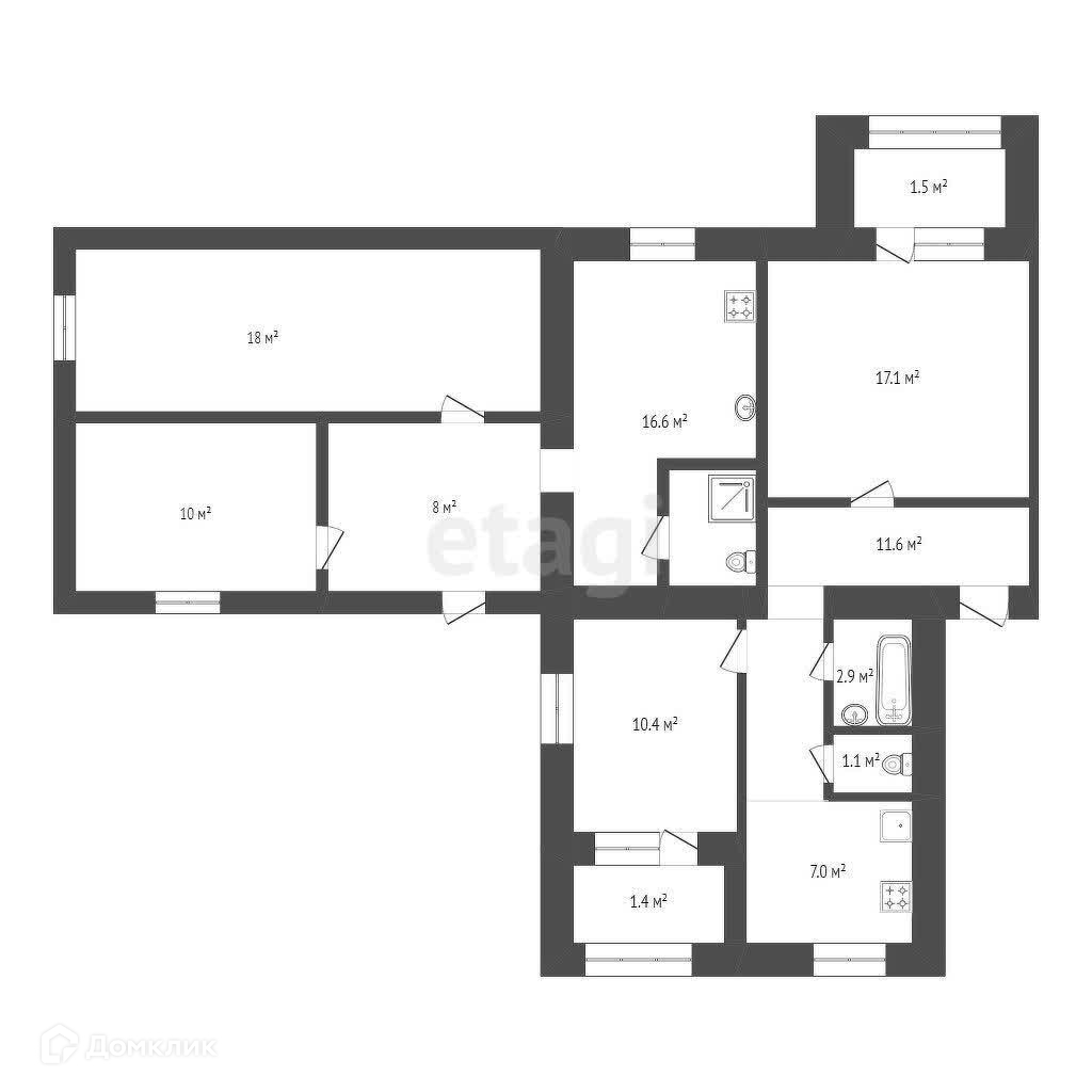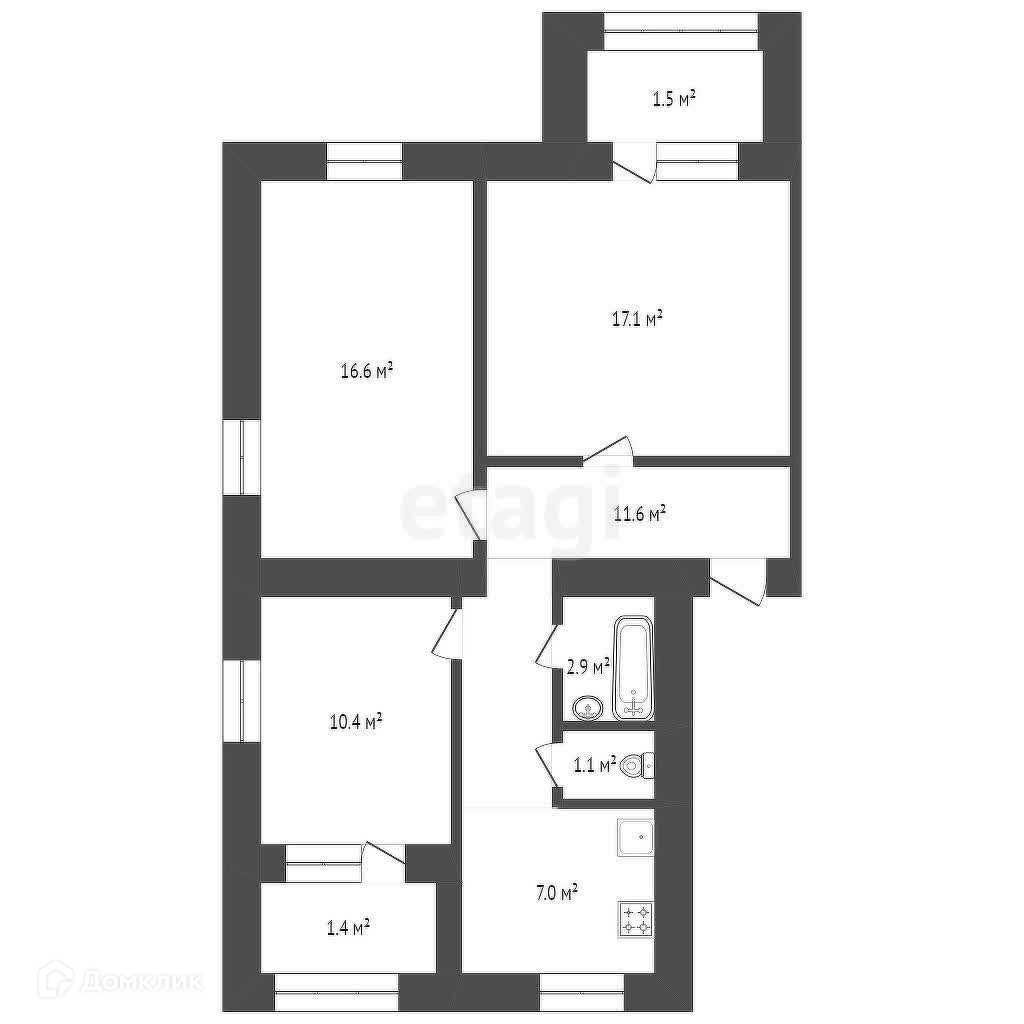 Общая площадь квартиры 69,6 м² без учета пристройки