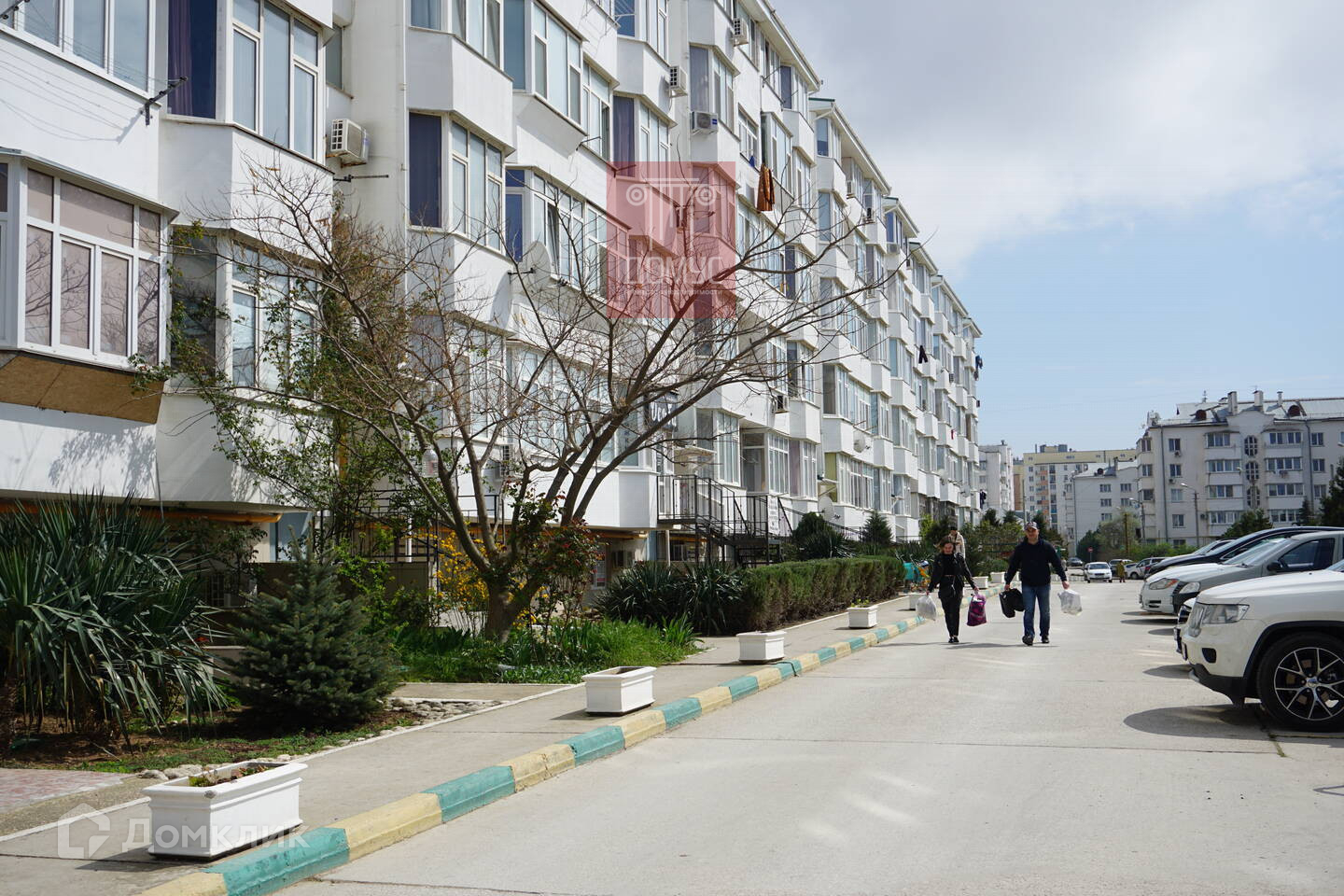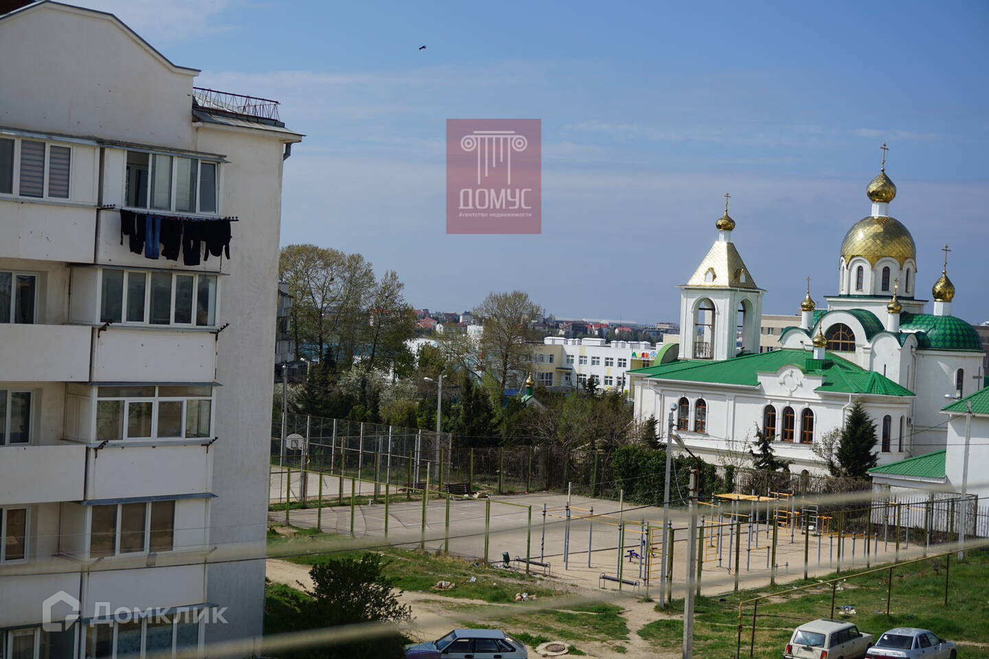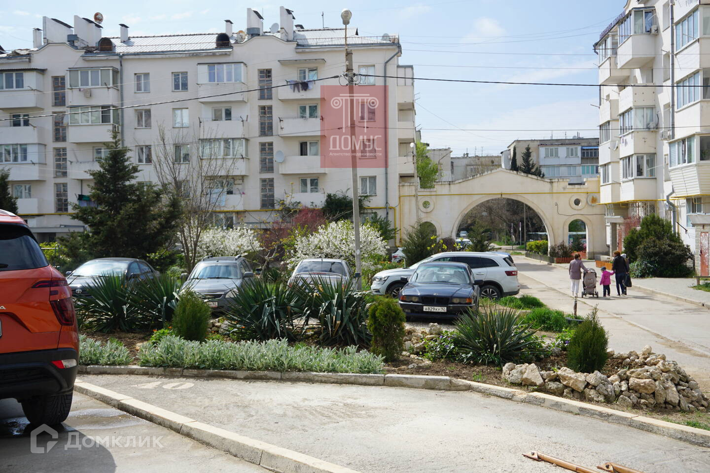 Во дворе парковка.