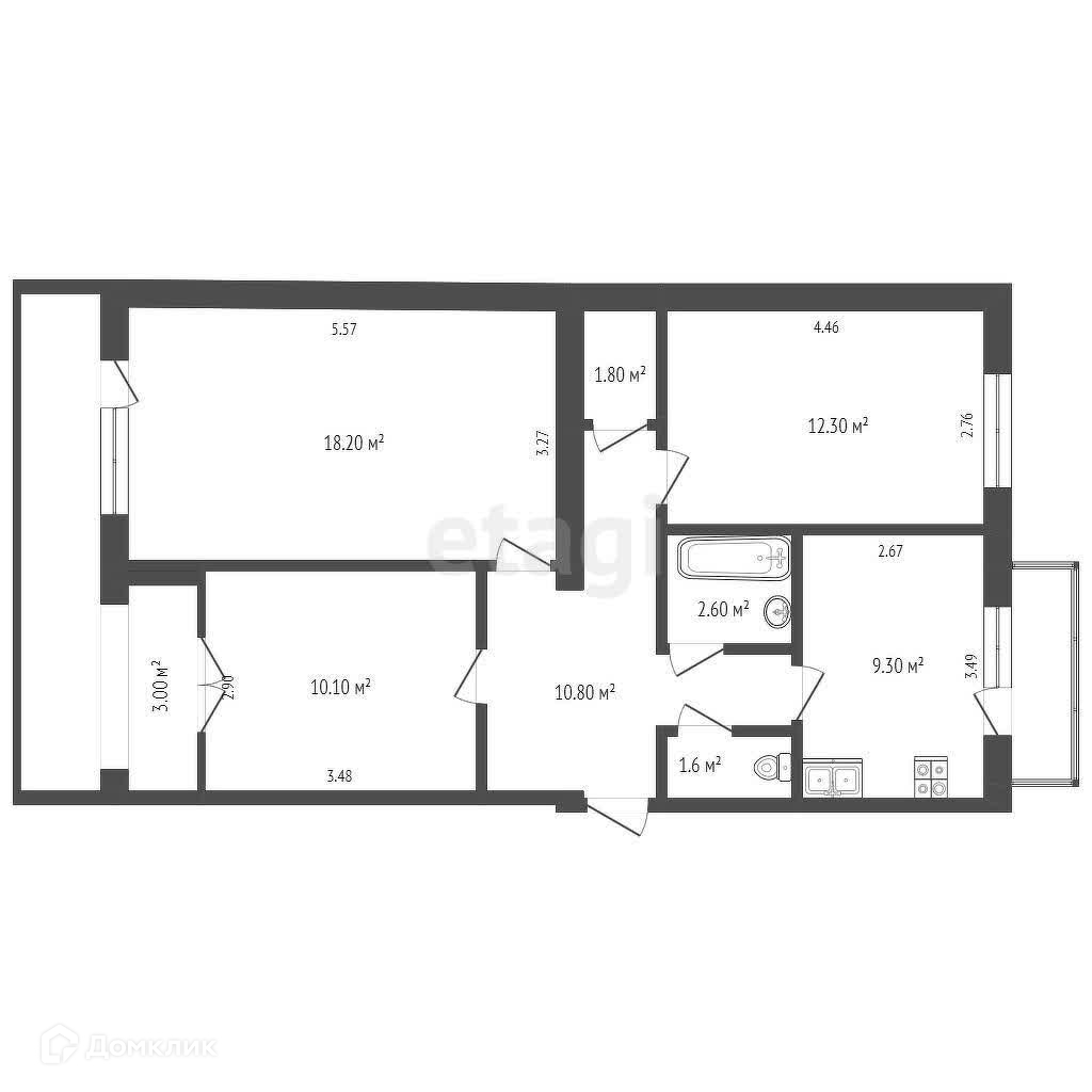 Планировка квартиры впечатляет: изолированные комнаты площадью 10,1+18,2+12,3 кв.м., большая кухня с выходом на лоджию площадью 9,8 кв.м., раздельный санузел и кладовая, которую можно легко преобразить в гардеробную. Дом газифицирован, с центральным отоплением, что обеспечивает комфорт в любое время года.