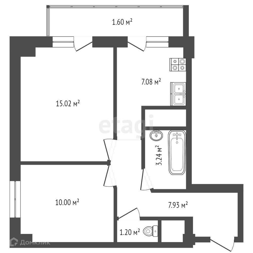 - Общая площадь квартиры (ЕГРН) – 47,1 м², площадь кухни расширена за счет одного из балконов и стала 52м2