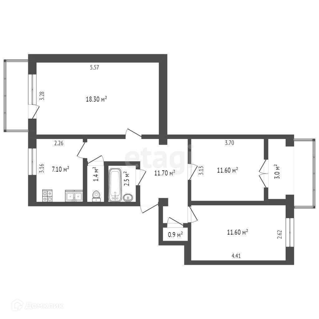 - общая площадь 69.2кв.м (без учета балконов)