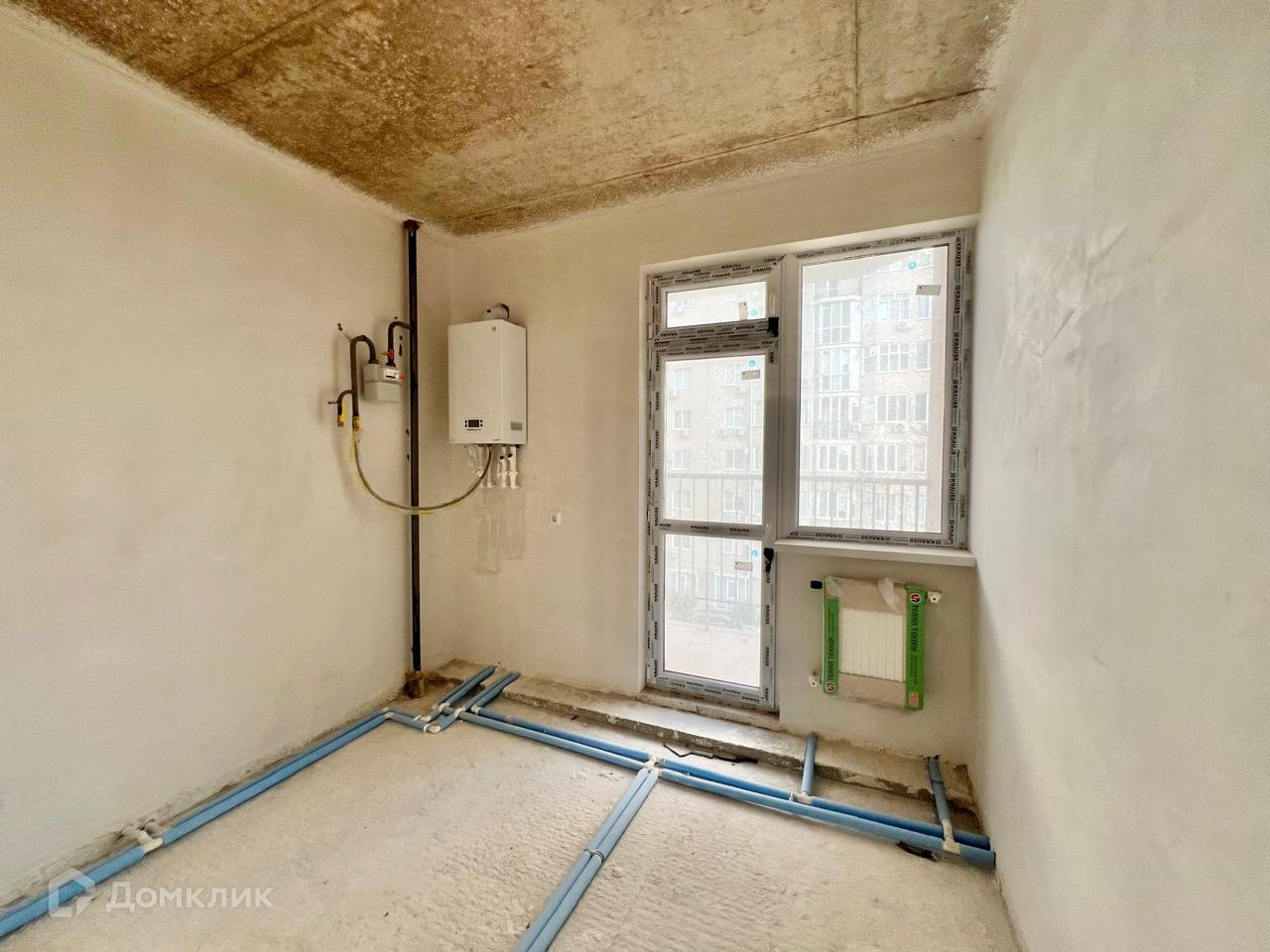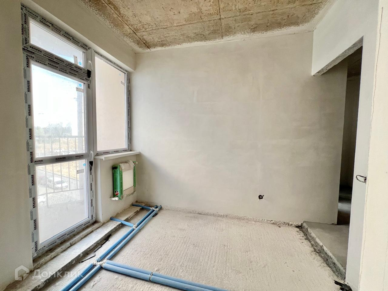 В квартире выполнено: стартовая шпаклевка стен (стены очень ровные!), стяжка пола, разводка труб водоснабжения, установлены радиаторы, счетчики.