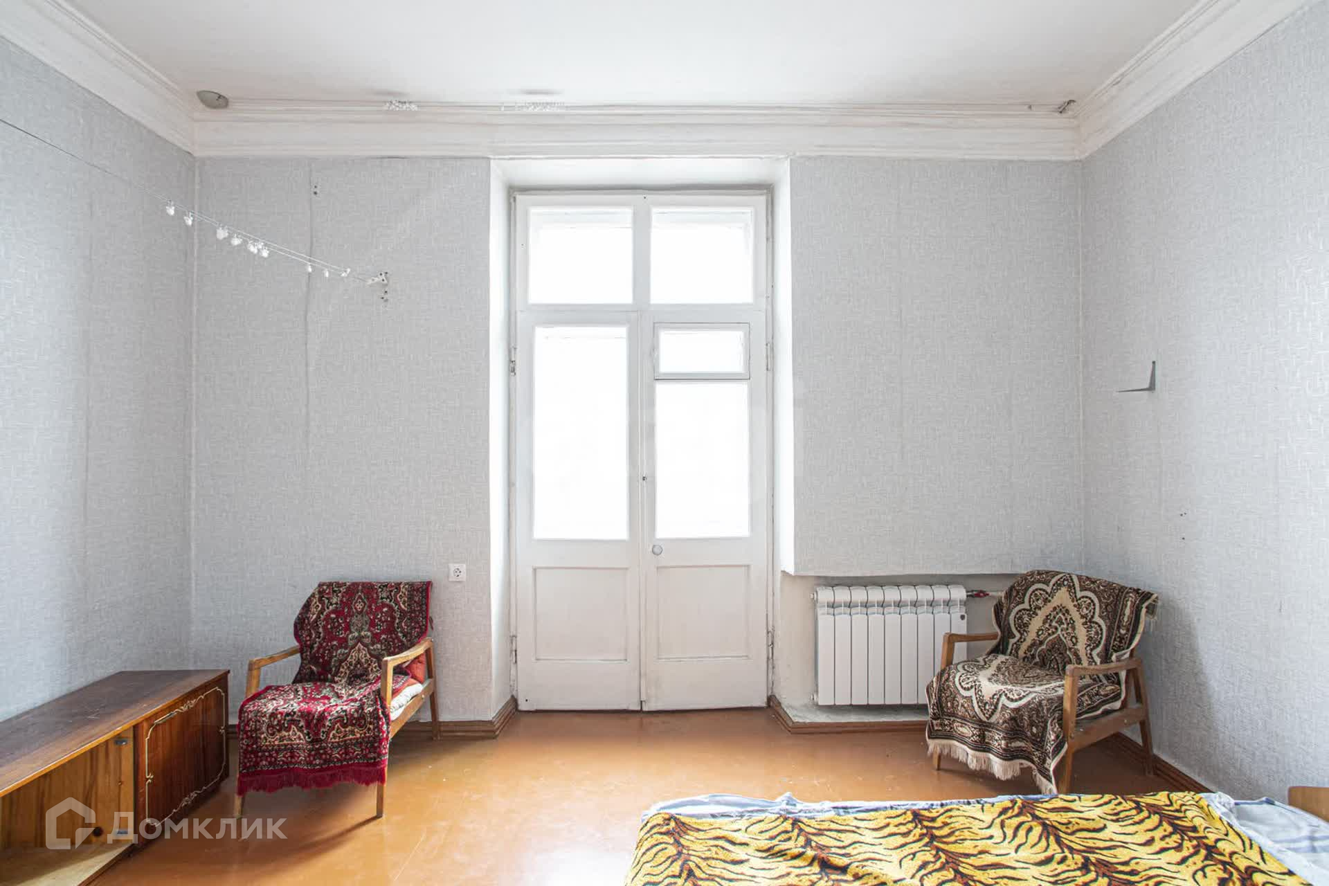 Дом "сталинской" постройки с толщиной стен 70 см и высокими потолками в 3 метра, что создает атмосферу простора в квартире.