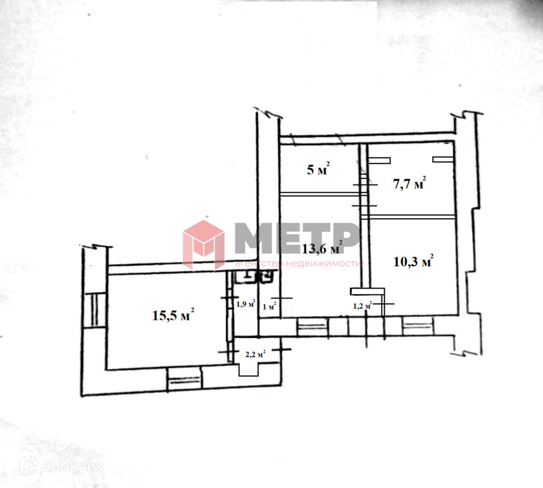 Жилая площадь 39.4 м2