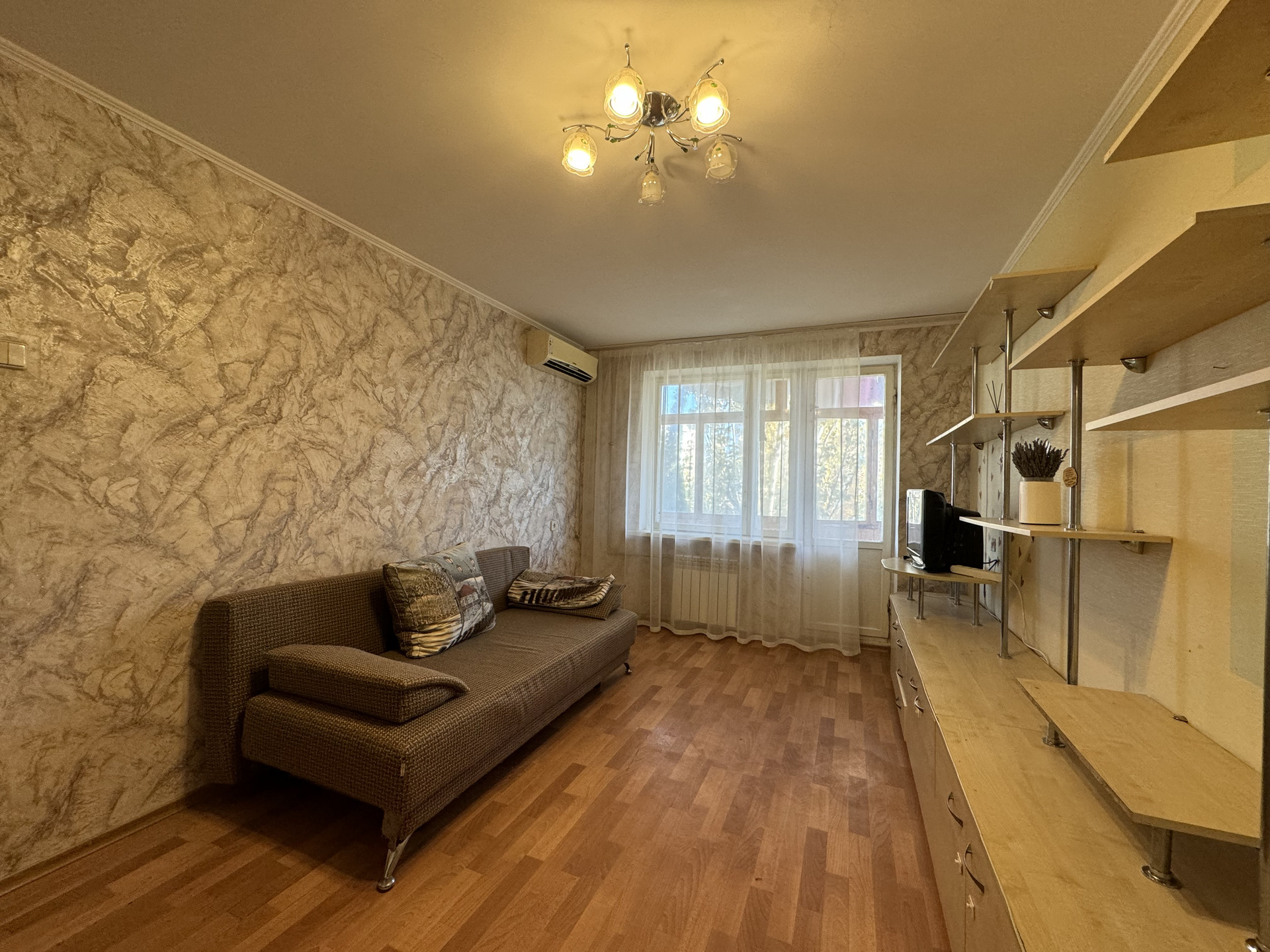 Этаж 3/5. Общая площадь 43,77 кв. м (без учета балкона и лоджии 40,7 кв.м), жилая - 26,4 кв.м, кухня- 6,2 кв.м. Комнаты изолированные. Застекленный балкон и лоджия. Санузел совмещенный. Бойлер. Счетчики. Кондиционер.