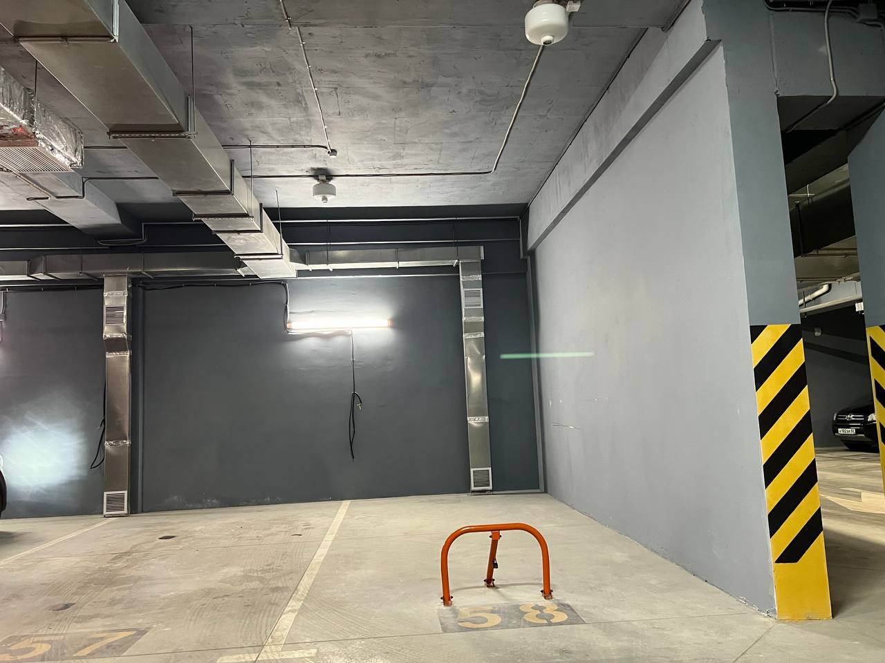 Стены и потолки паркинга – окрашены.
