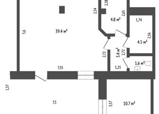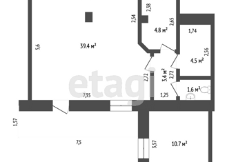 Общая площадь: 44.7 м2