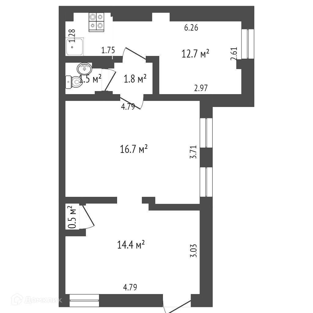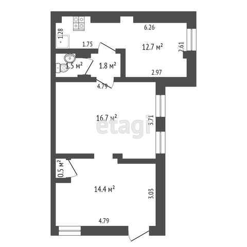 Общая площадь 47.4 м2