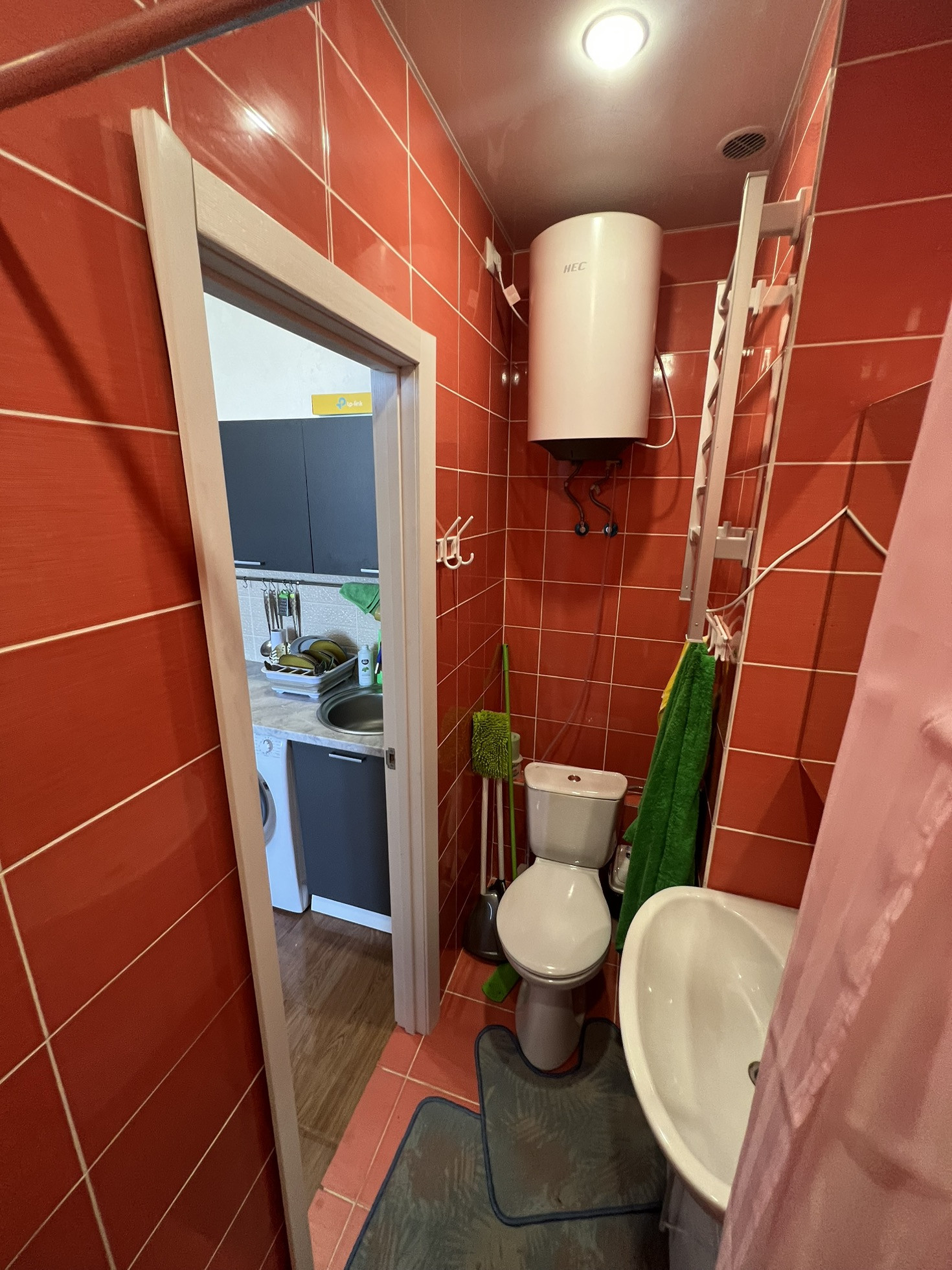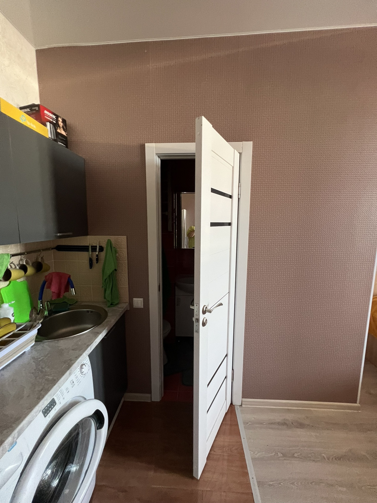 Площадь 21 м2 и есть санузел .
