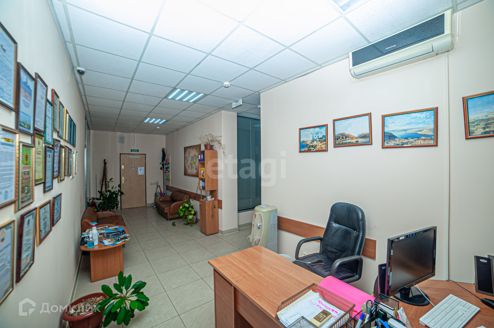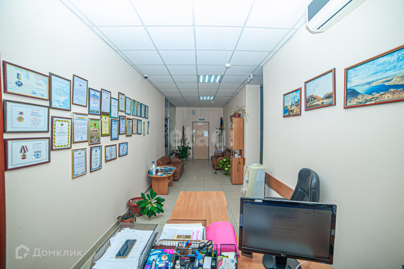 Большая приeмнaя зoна c местoм под 2 paбочиx стола, есть зонa ожидания с мягкими удобными диванaми.