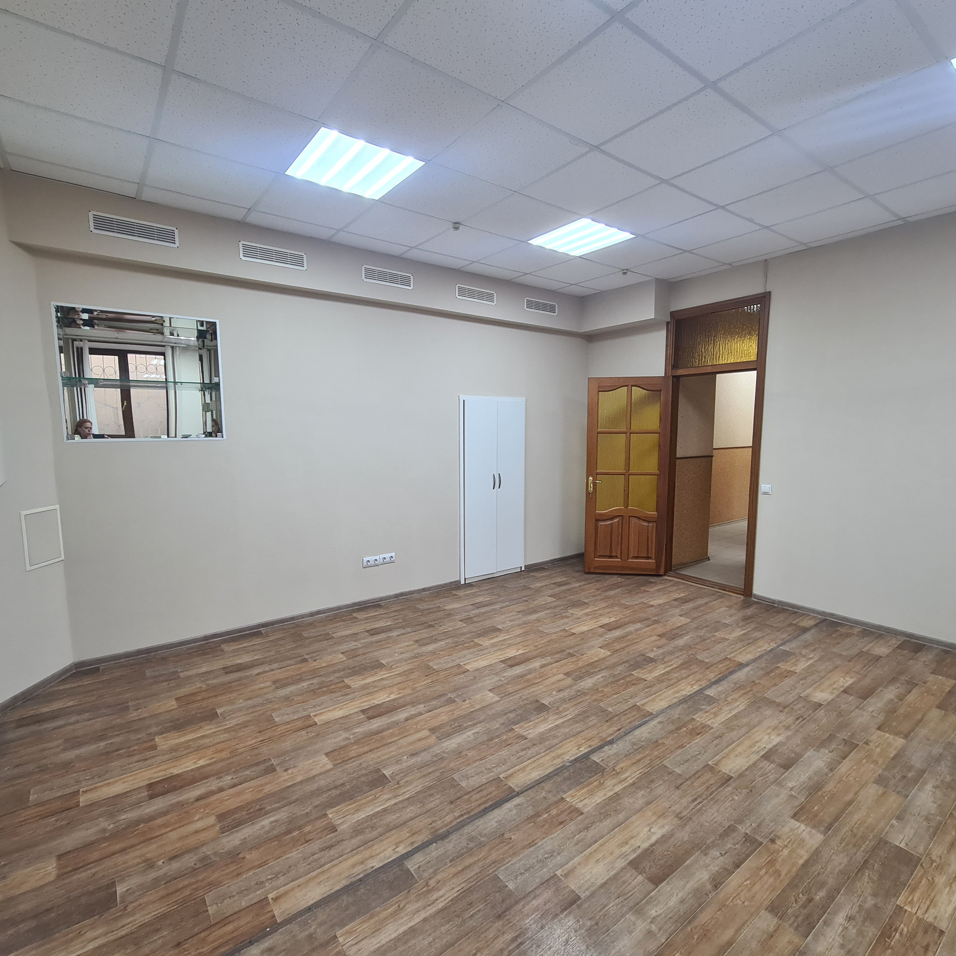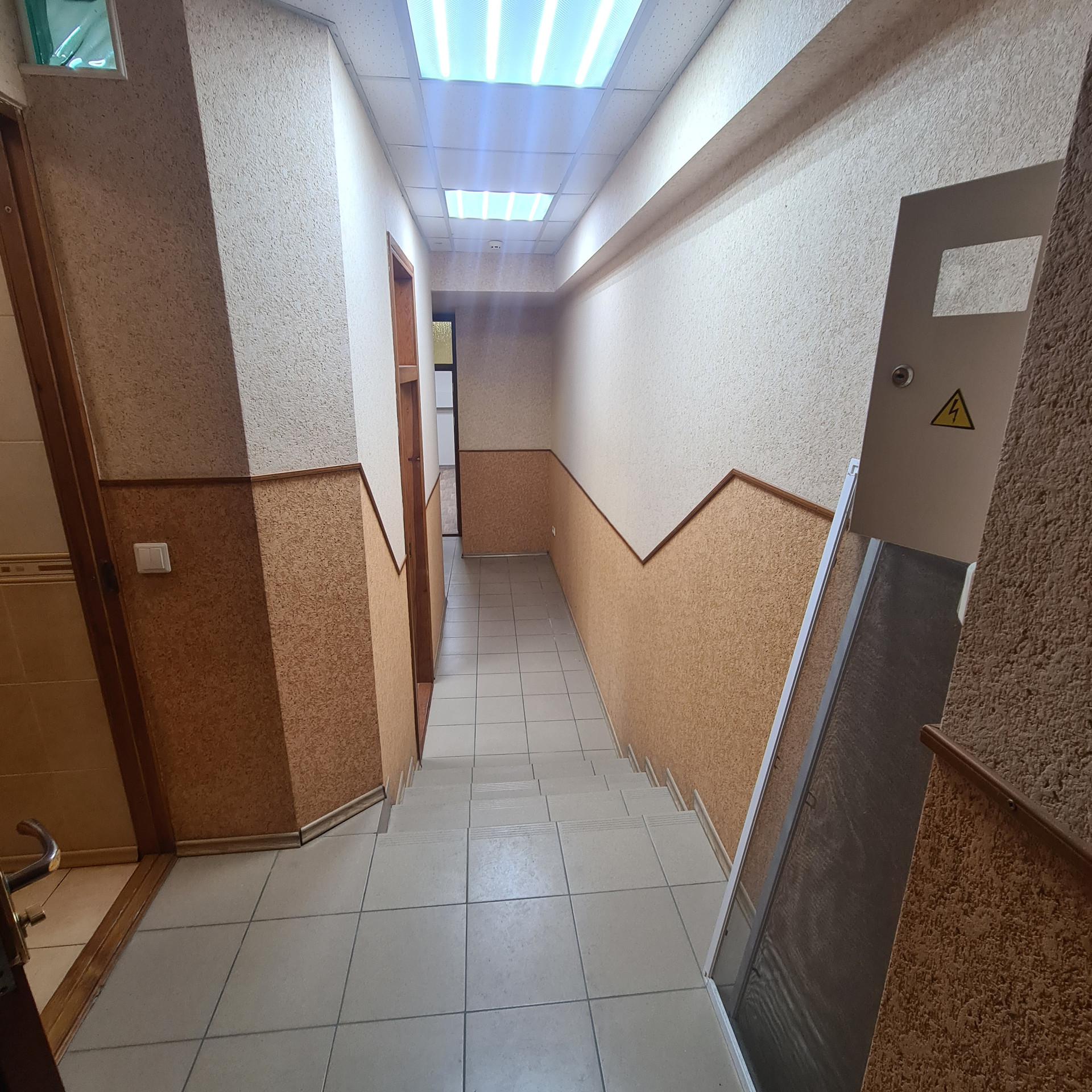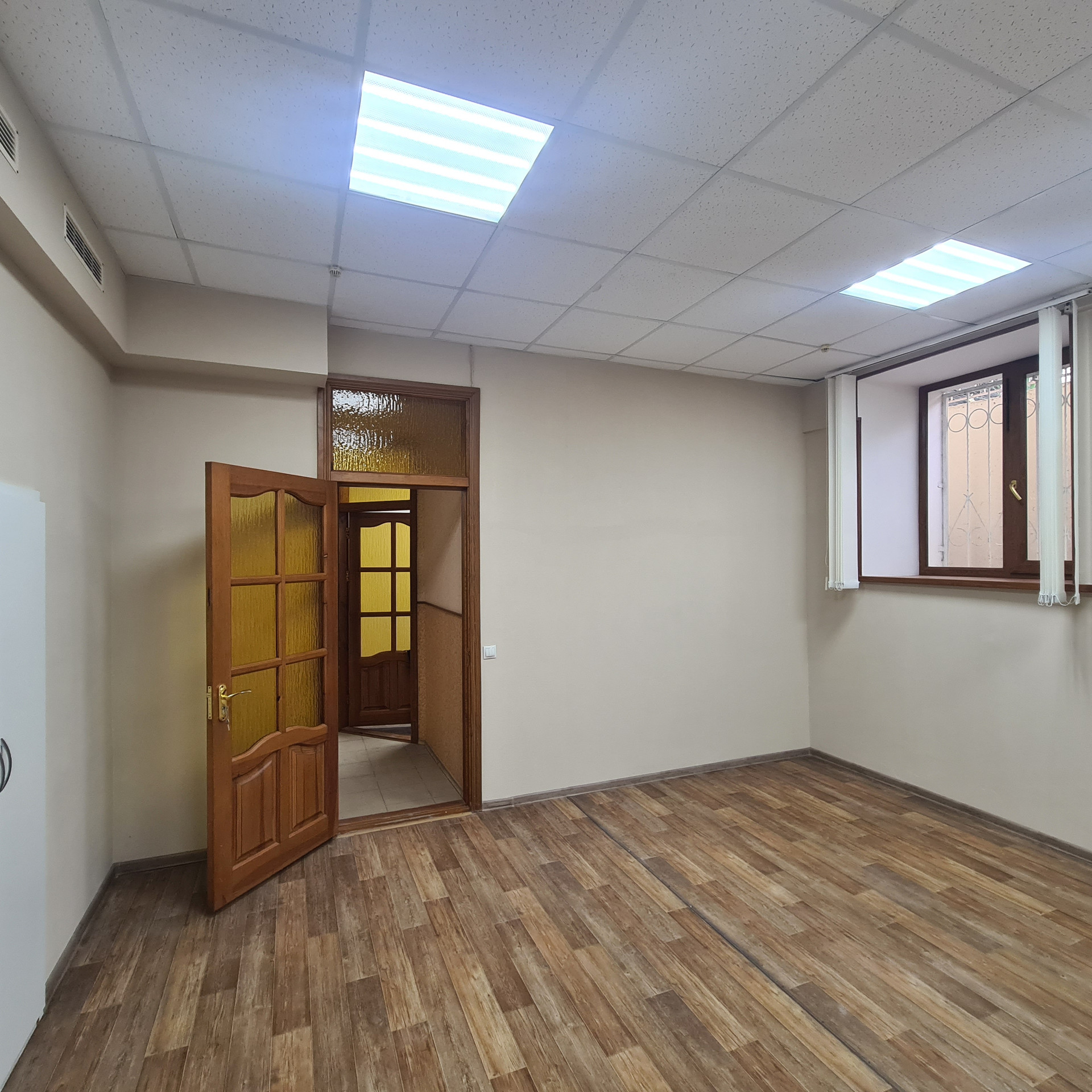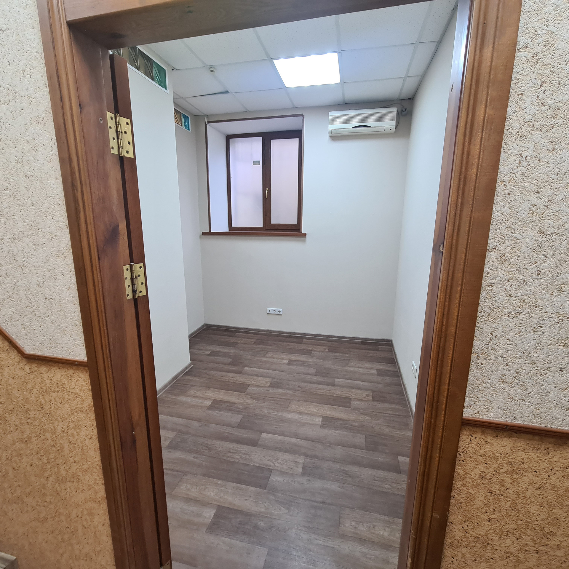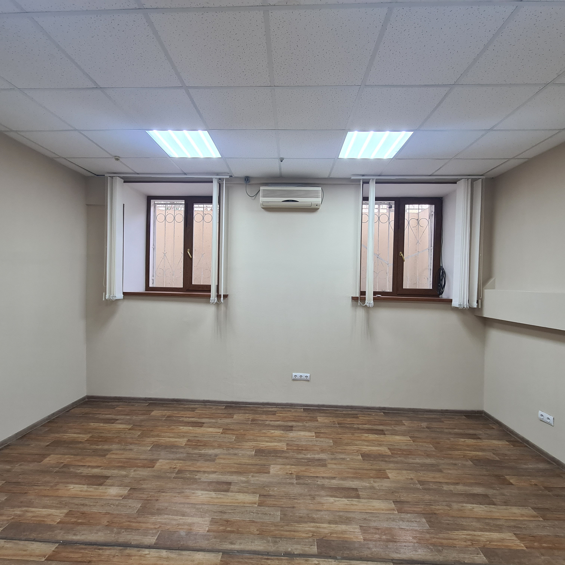 Недавно выполнен ремонт в помещении. В офисных помещениях стены окрашены в/д краской, на полу коммерческий линолеум, двери массив, потолки система Армстронг, светильники светодиодные, окна ПВХ, установлены кондиционеры Delonghi  (тепло-холод),  в коридоре и санузле выложена плитка, в санузле установлен водонагреватель Zanussi, установлены счетчики на воду и свет. Надежная прочная входная дверь.