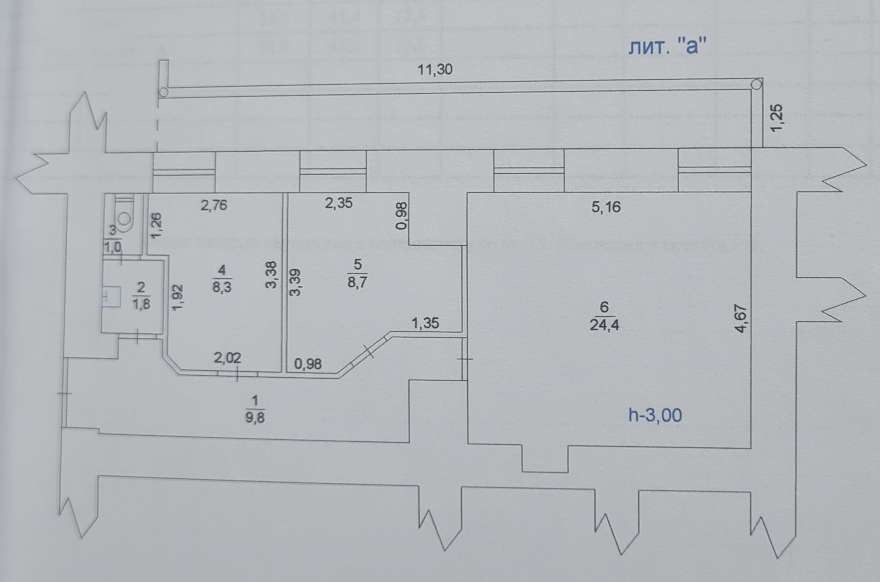 Планировка кабинетная: три офисных помещения, санузел, коридор.