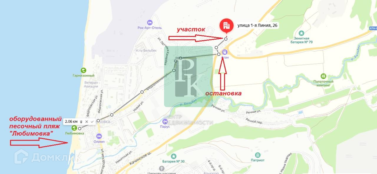 Удобное расположение, до песчаных пляжей 2 км или 20 минут пешком, до остановки общественного транспорта - 200 м, до продуктового магазина – 600 м. На северной стороне г. Севастополя, до которой 5 мин. на авто или автобусе, расположены: продуктовые магазины, больница, аптеки, реконструированный парк "Учкуевка", школы, садики, АЗС, строительные магазины, рынок, автостанция, банк, паромная и катерная переправы до центра города.