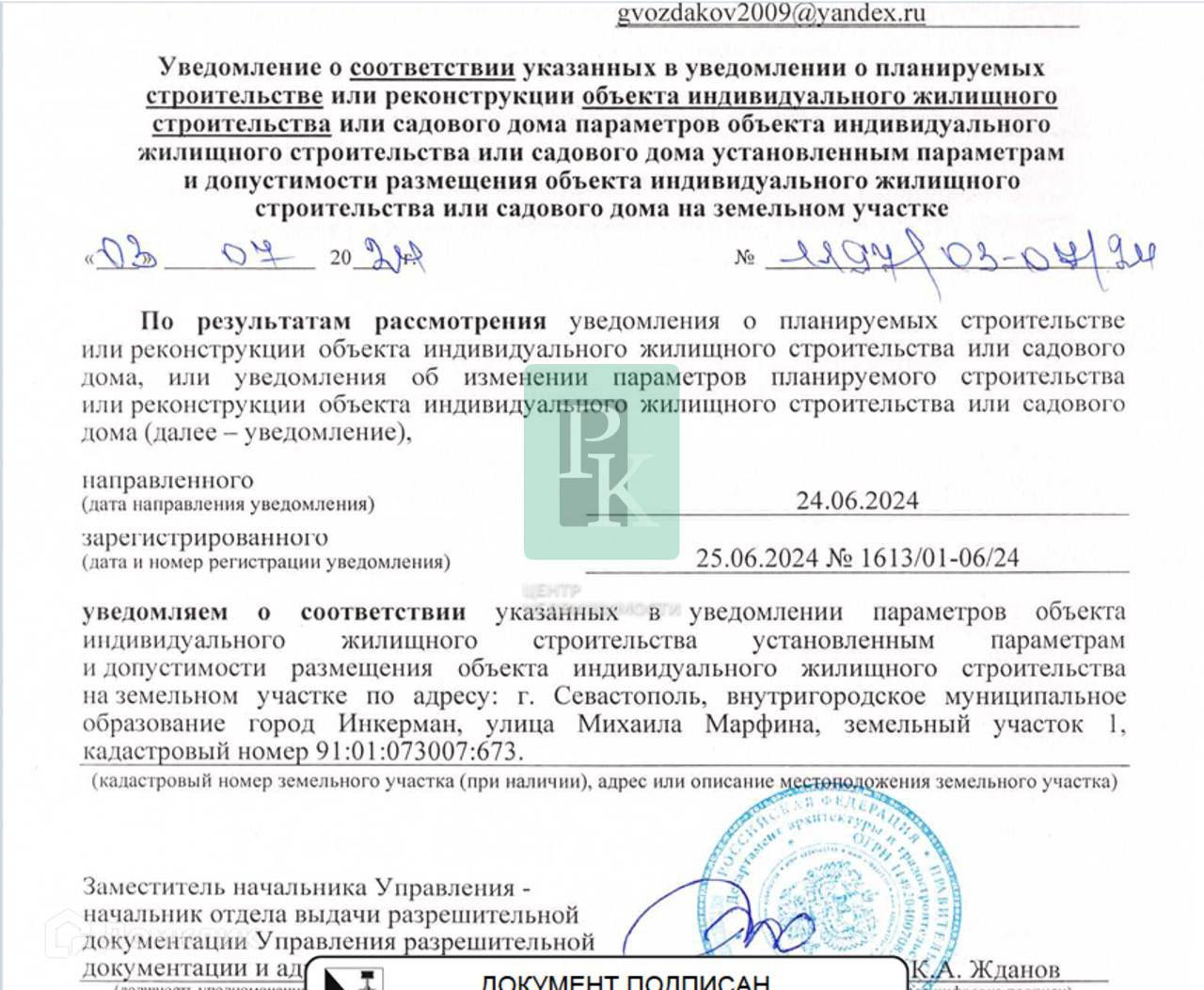 Получено соответствие на уведомление о начале строительства!