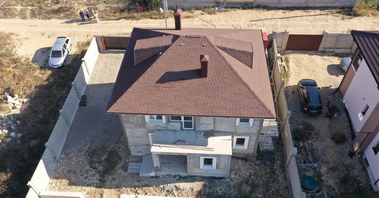 — Крыша — битумная черепица , утеплена по технологии Технониколь.