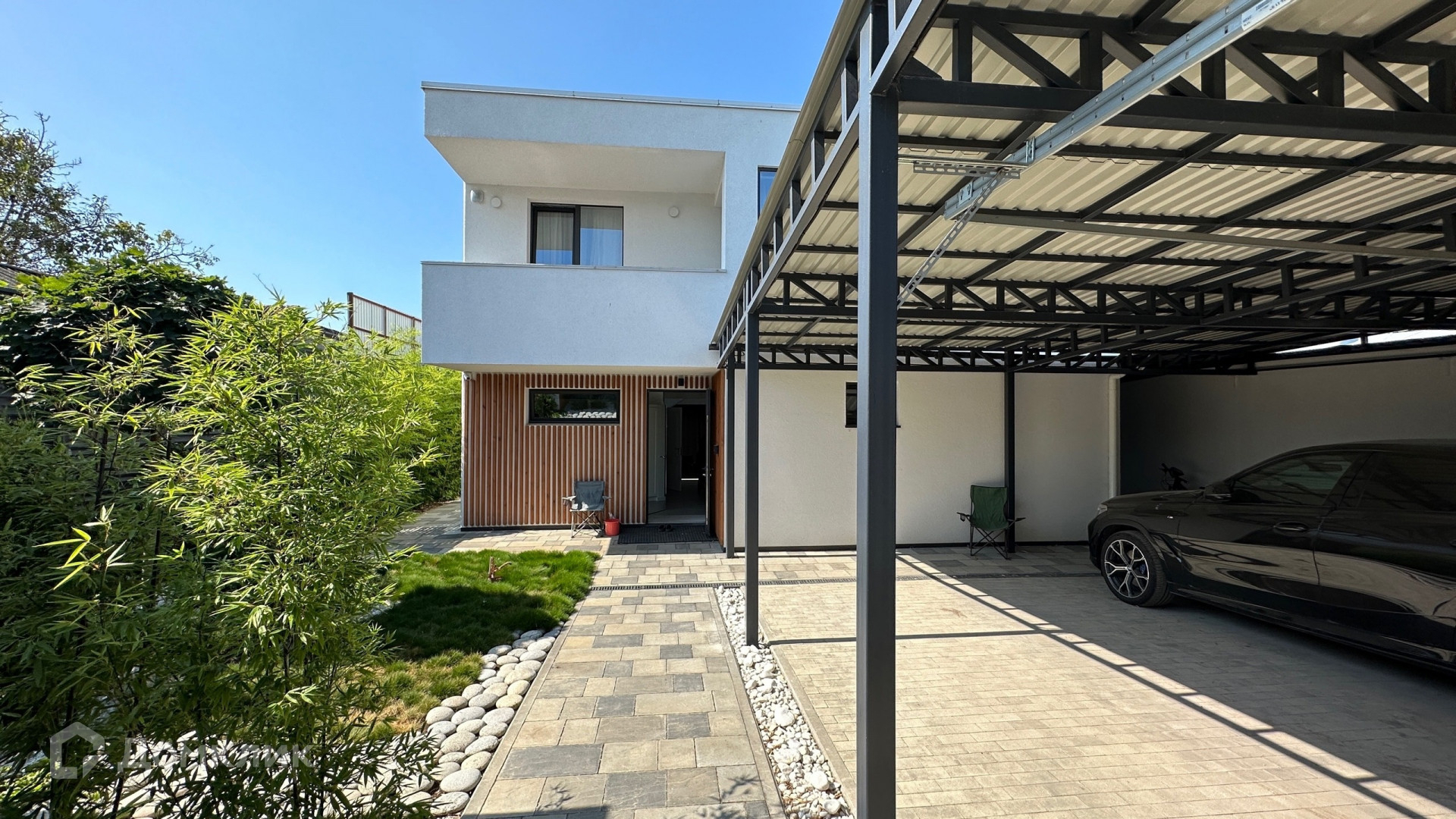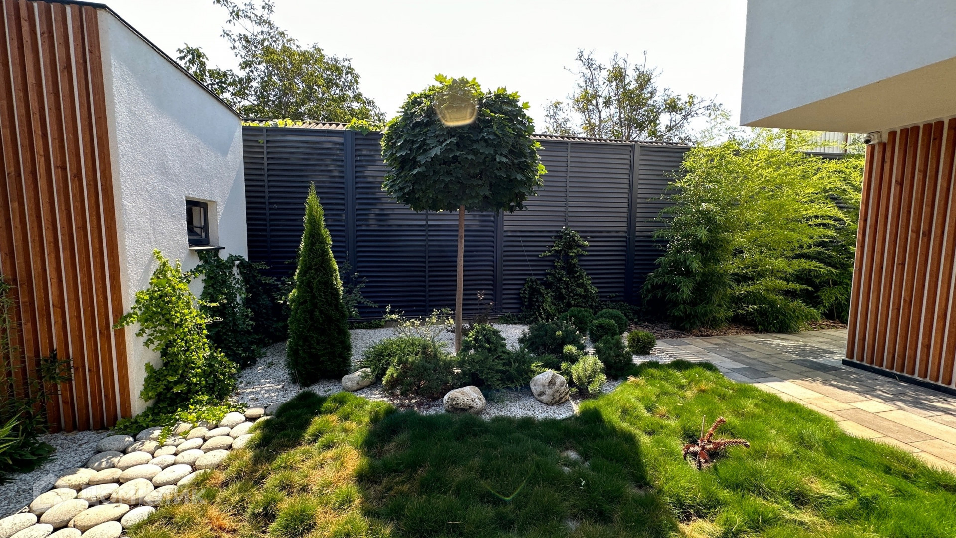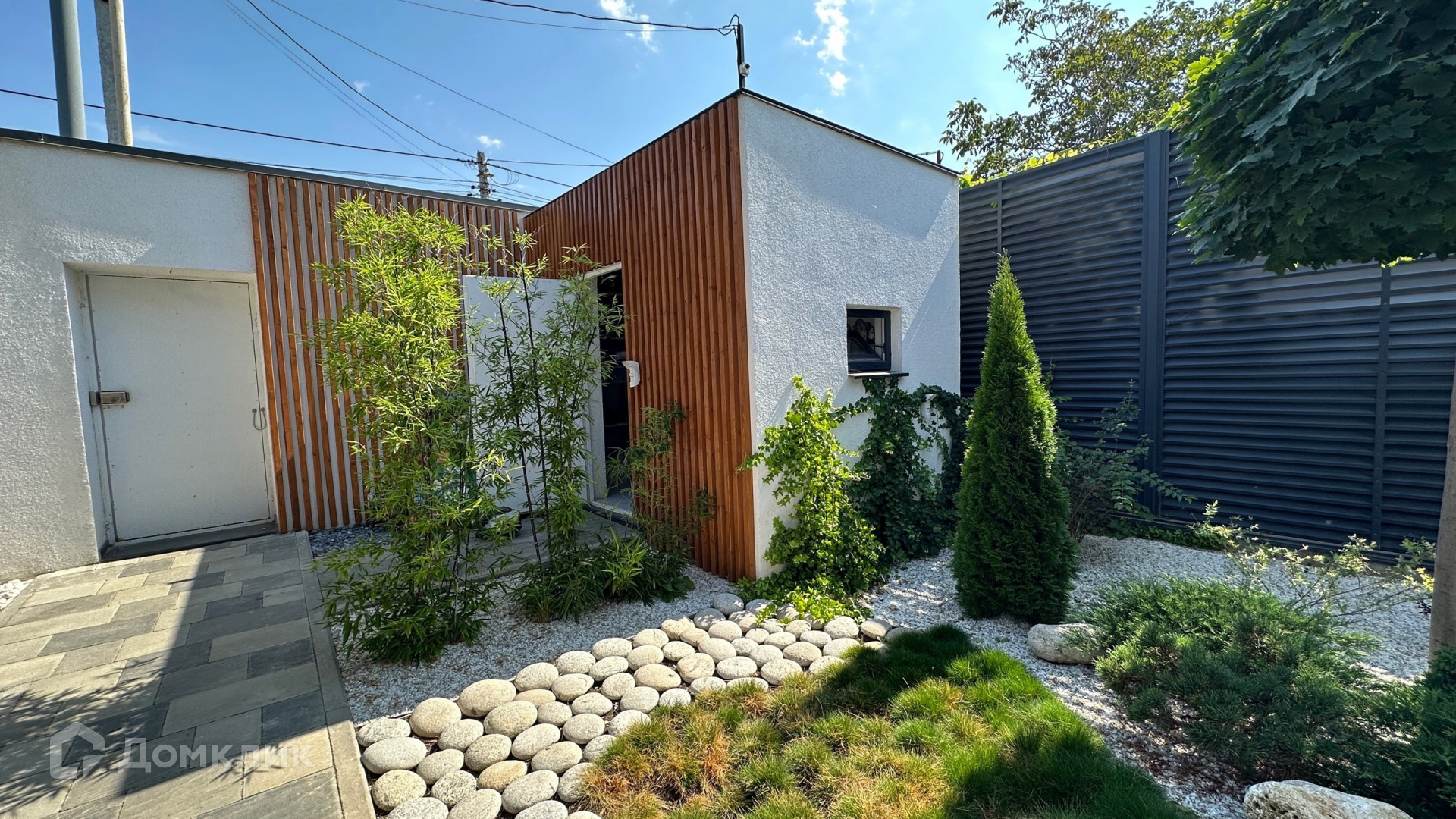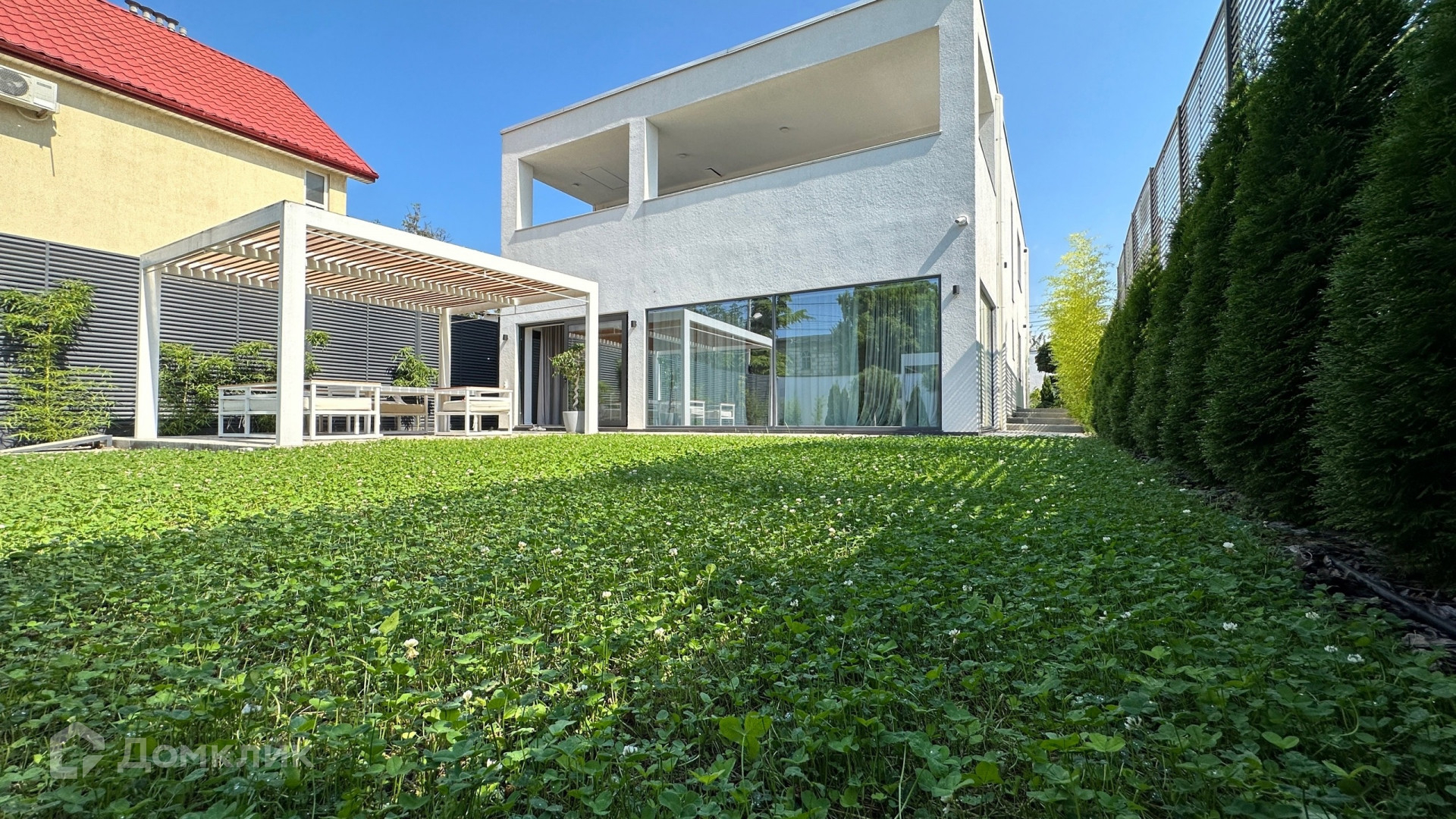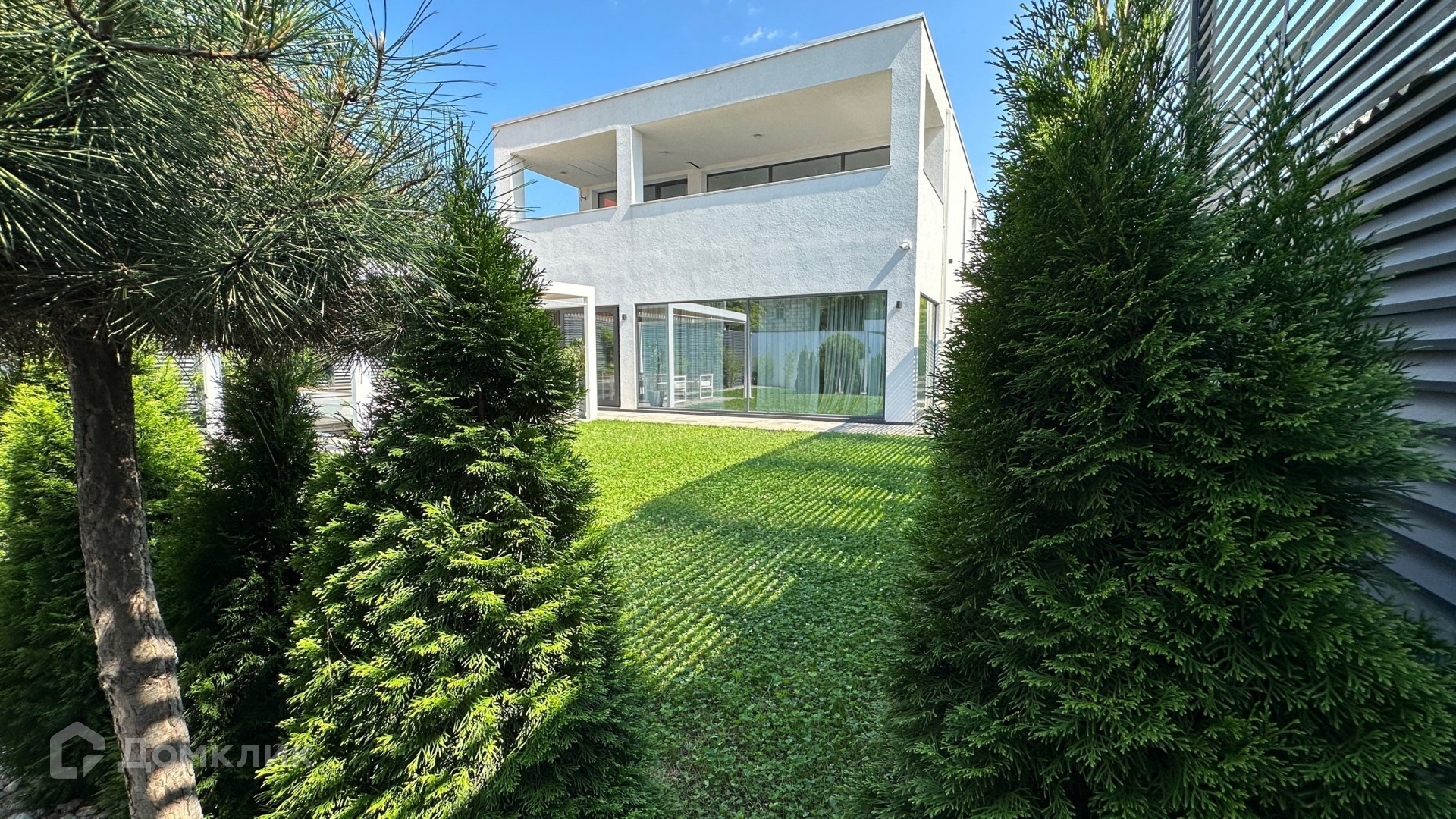 Большая придомовая территория, много зелёной зоны: газоны, розарий, тропические растения, хвойные деревья.