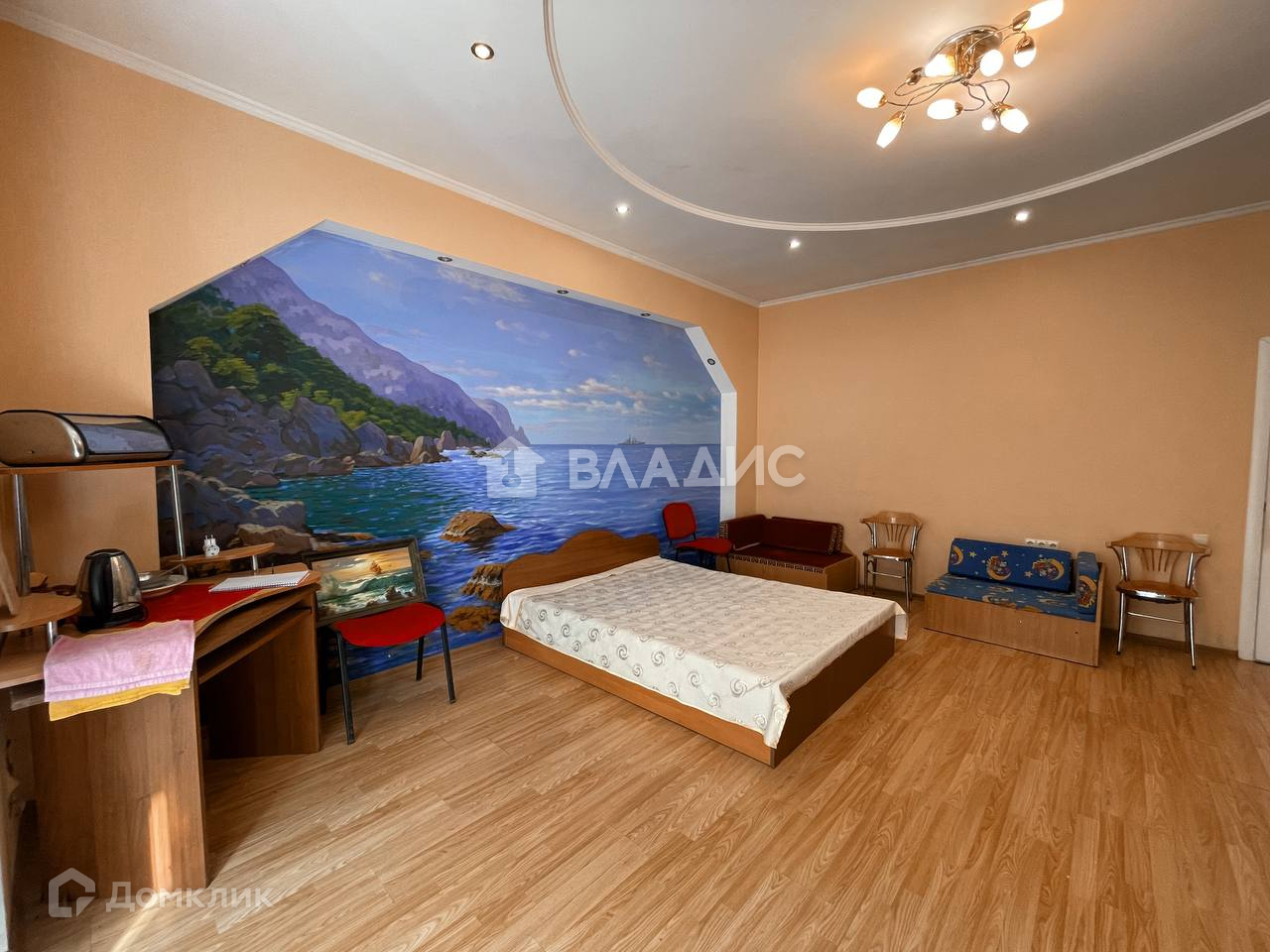 В номере 3 спальных места:просторная кровать и 2а раскладных дивана,кондиционер,рабочий стол,модульная гостинная стенка,отдельный шкаф,прекрасное многоуровневое освещение,живописная стена,сделанная собственными руками.Санузел полностью оборудован всеми необходимыми атрибутами для качественной жизни: туалет,душевая кабина,бойлер,раковина