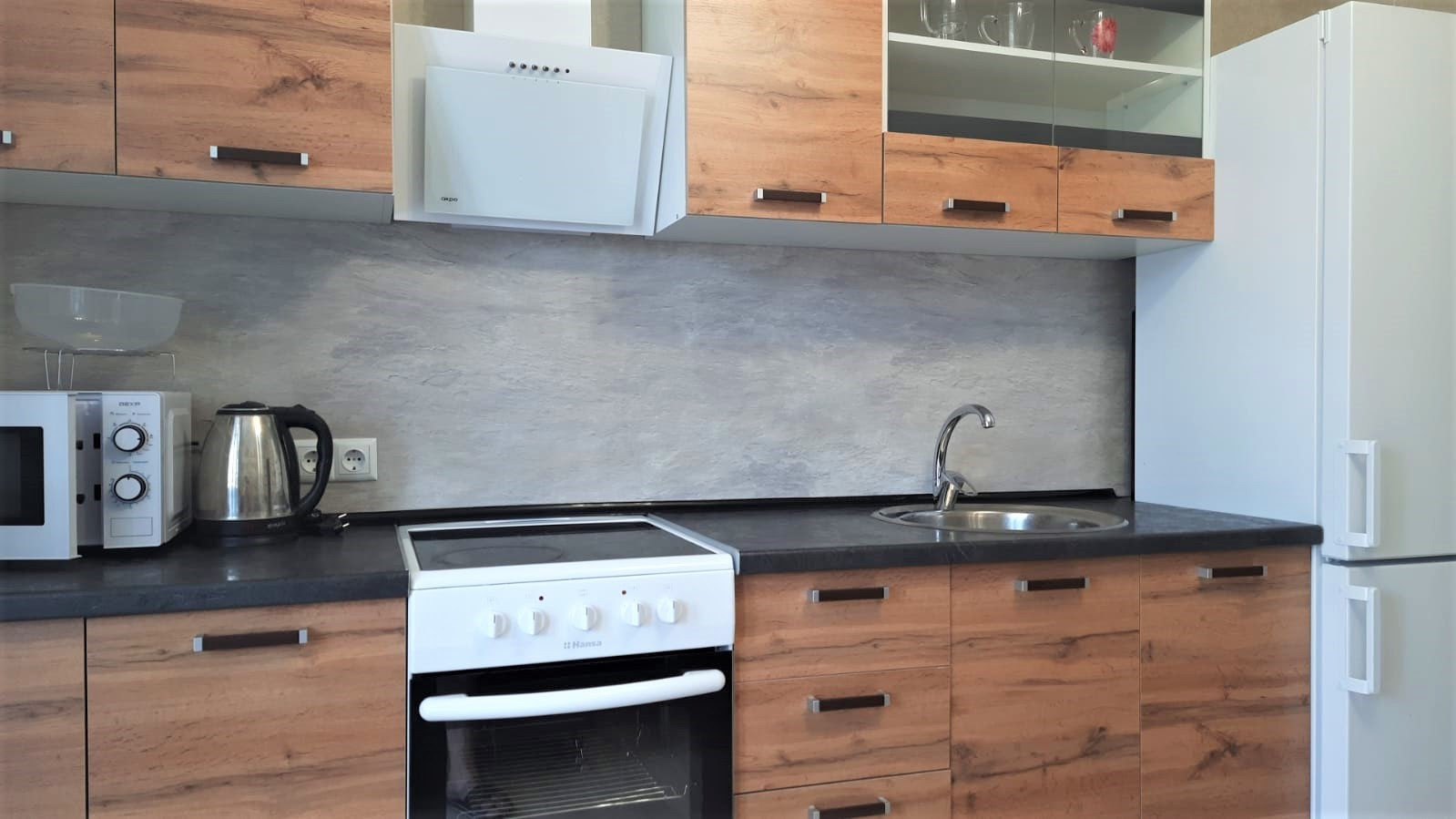 ТЕХНИКА : Телевизор в комнате подключен к интернету , стиральная машинка автомат, большой холодильник ноу-фрост, кухонная электроплита со стеклокерамикой, микроволновка, кухонная вытяжка, чайник, утюг.