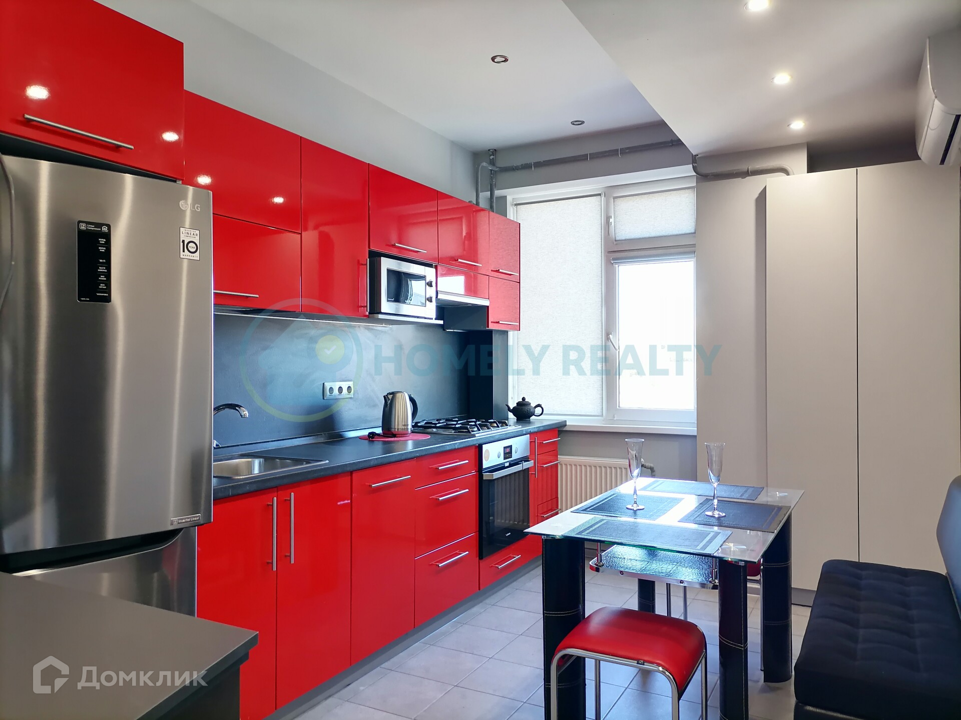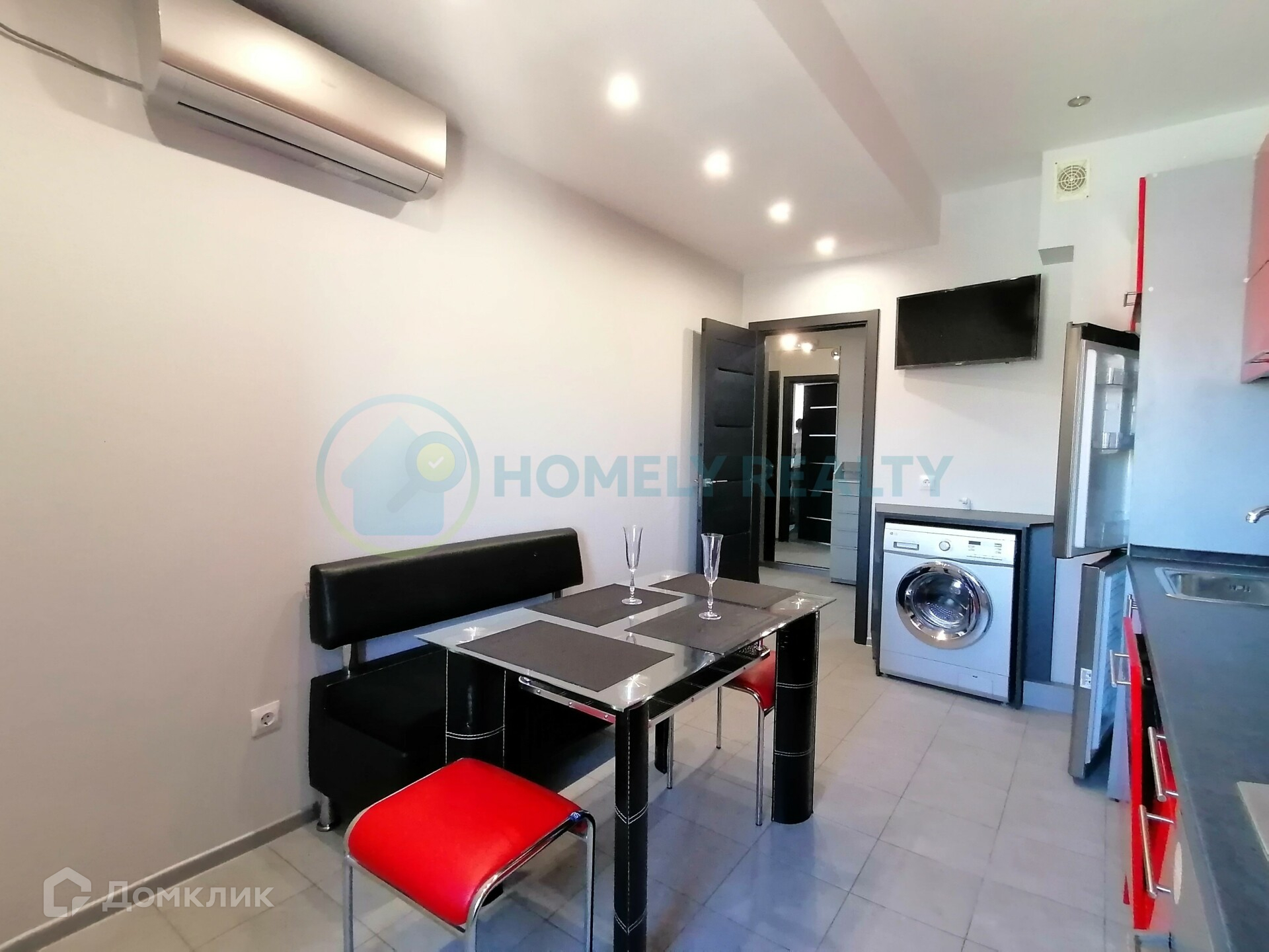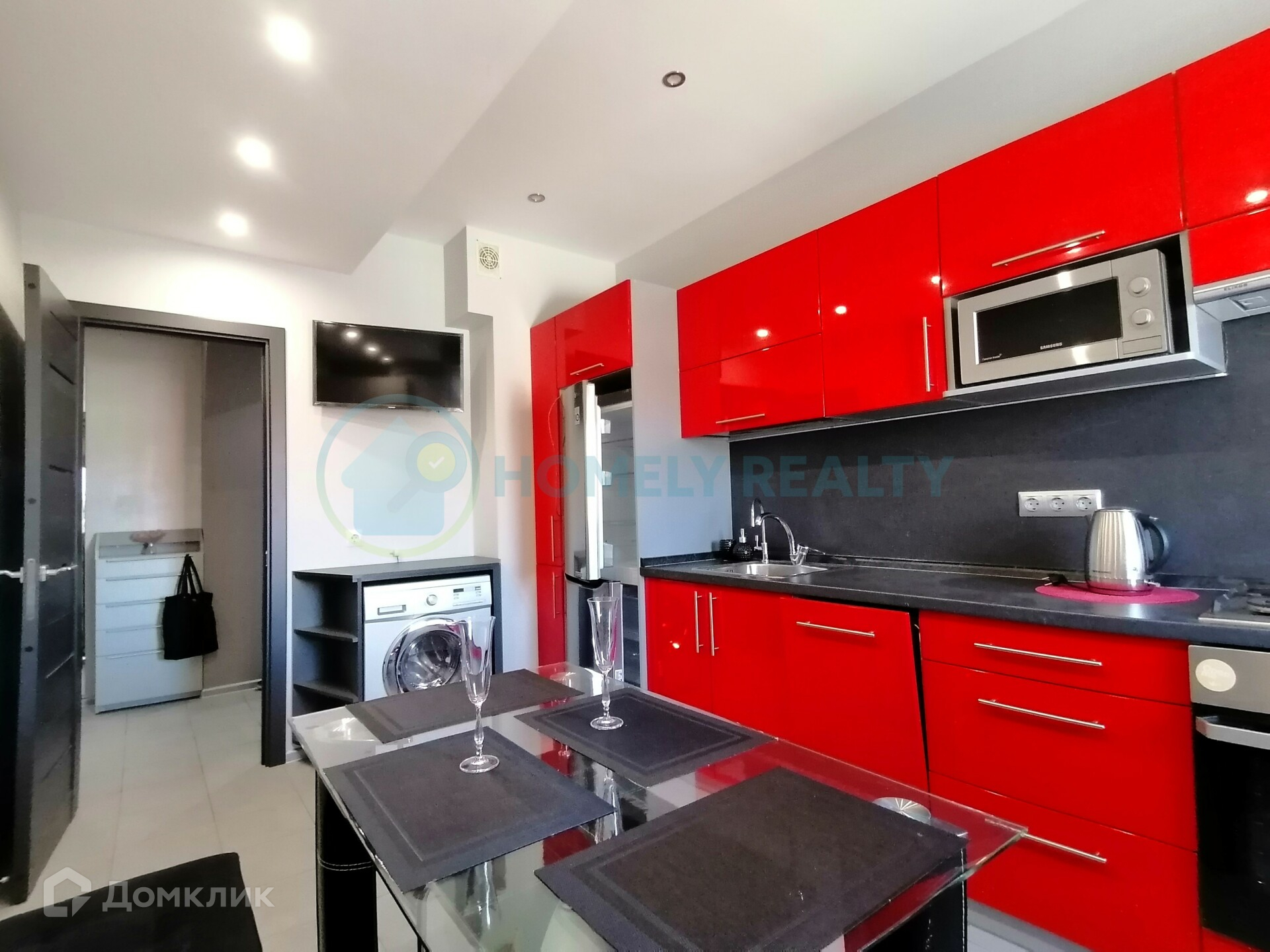 — Бытовая техника: Телевизор, стиральная машина, посудомоечная машина, холодильник, микроволновка, чайник, газовая плита, вытяжка кухонная, духовка, кондиционер, WI-FI роутер. Дополнительно: Беспроводной интернет и цифровое телевидение, утюг, гладильная доска, интернет, интернет WI-FI, телевидение.