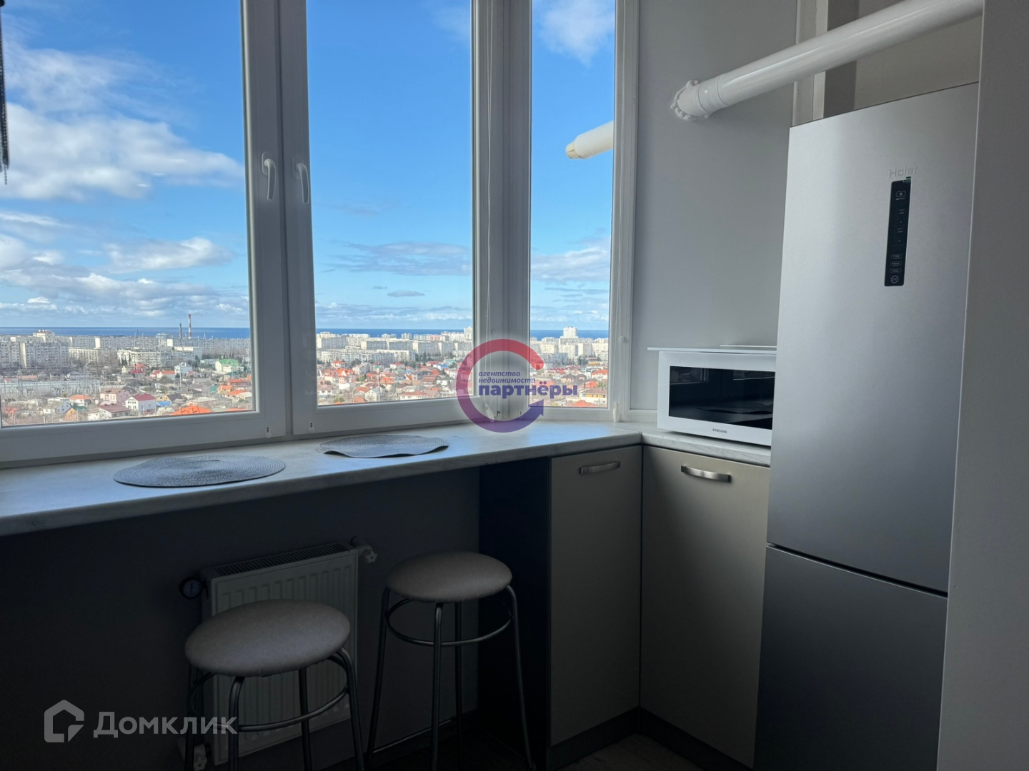 В кухне, возле барной стойки и на лоджии (выход из спальни) вам откроется ВОСХИТИТЕЛЬНЫЙ вид на МОРЕ и красивейшие крымские ЗАКАТЫ!!!