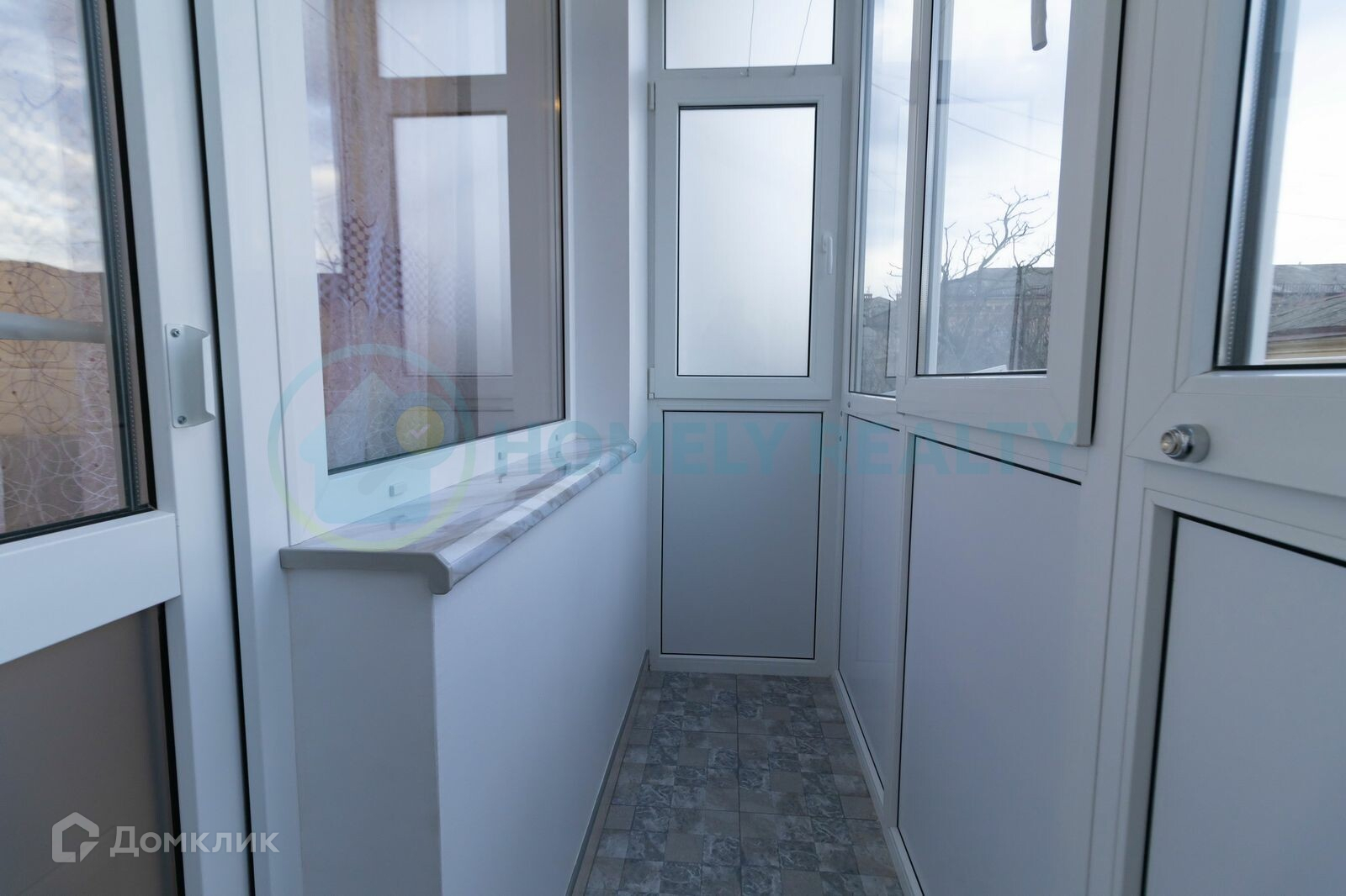 — Балкон застеклен, на полу плитка.