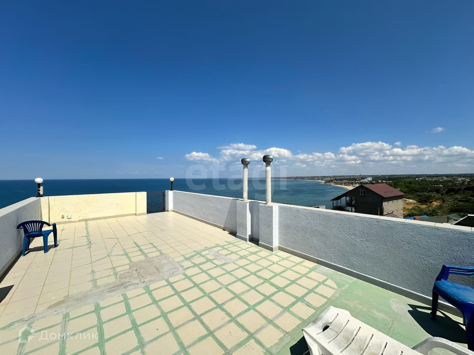 Есть придомовая территория — с отличной беседкой и летней кухней. Есть также на крыше основного дома большая смотровая площадка с которой открывается шикарный вид на море, на город и на пляж Учкуевка и вообще весь залив.
