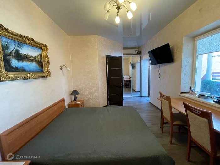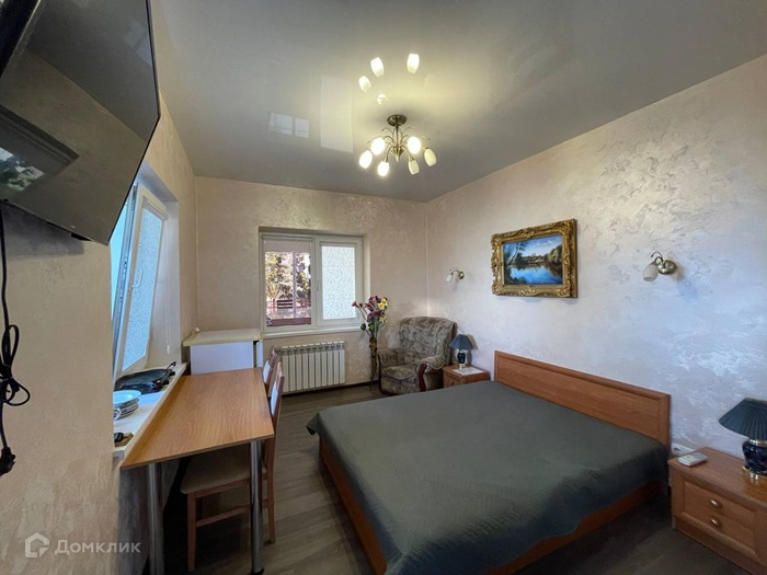 Сдается на длительный период студия в частном доме с отдельным входом. МКР Матюшенко. В студии все как на фото, все необходимое для проживания имеется: двуспальная кровать; современный тв и интернет; шкаф-купе; кондиционер; электрическая плитка для приготовления пищи. Стиральной машины нет. Двор закрытый , благоустроенный. Есть мангальная зона и бассейн. НА территория находится еще один дом, двор общий, но большой... Идеально подойдет для 1 человека или пары. Возможно студента или студентки. В 500 м Морской колледж, в 200 м от дома Медицинский колледж им. Жени Дерюгиной.