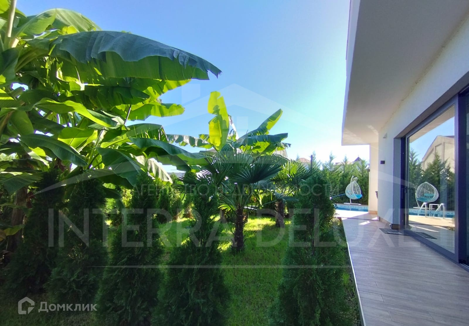 - На территории высажены декоративные растения, банановые пальмы