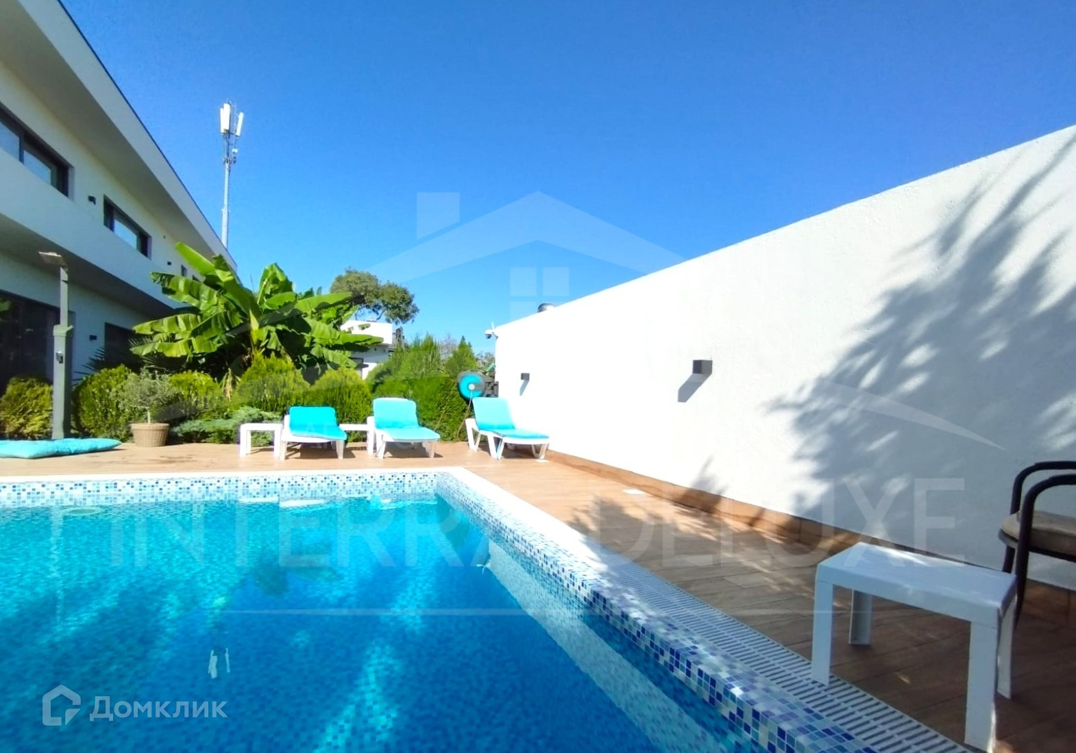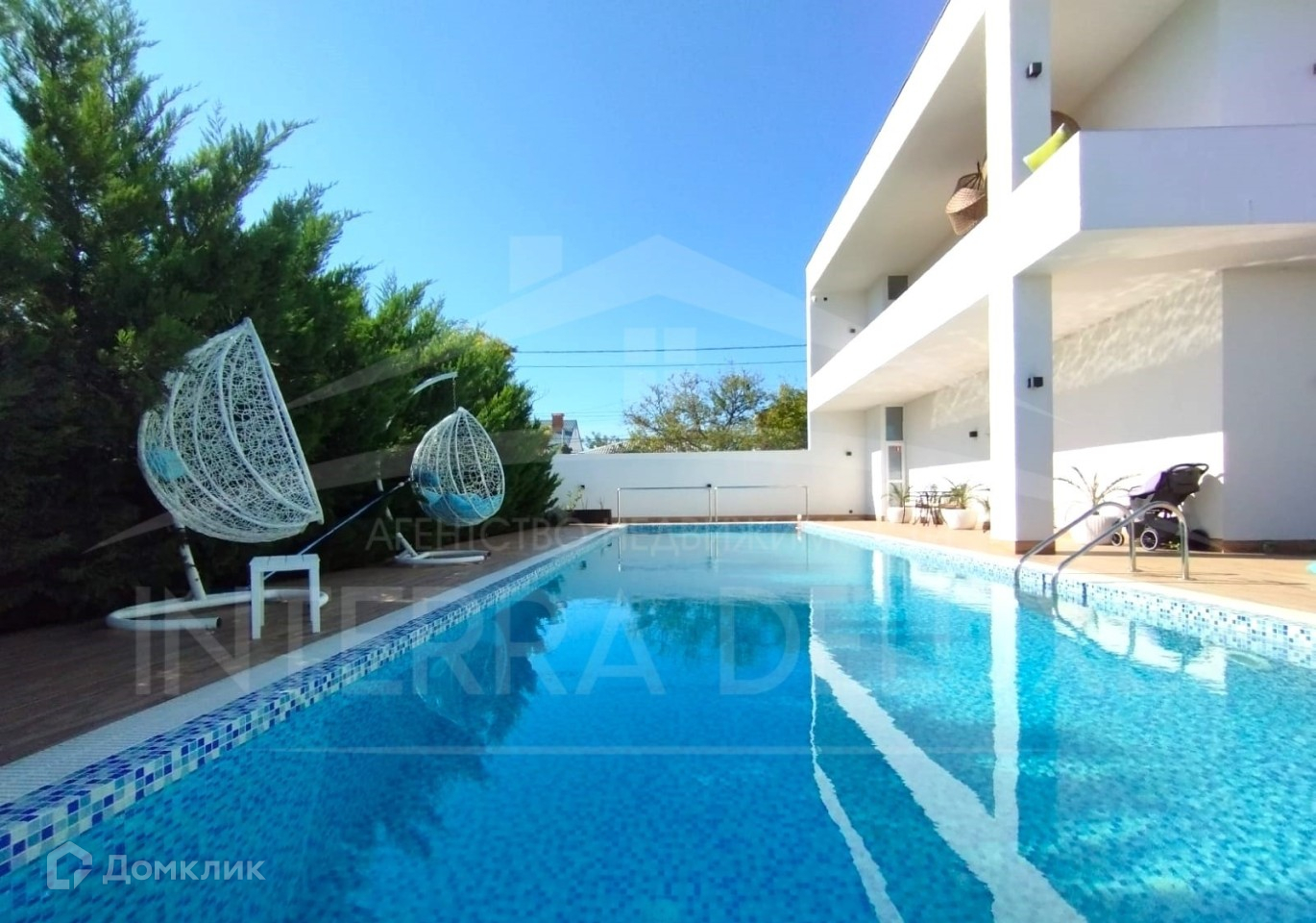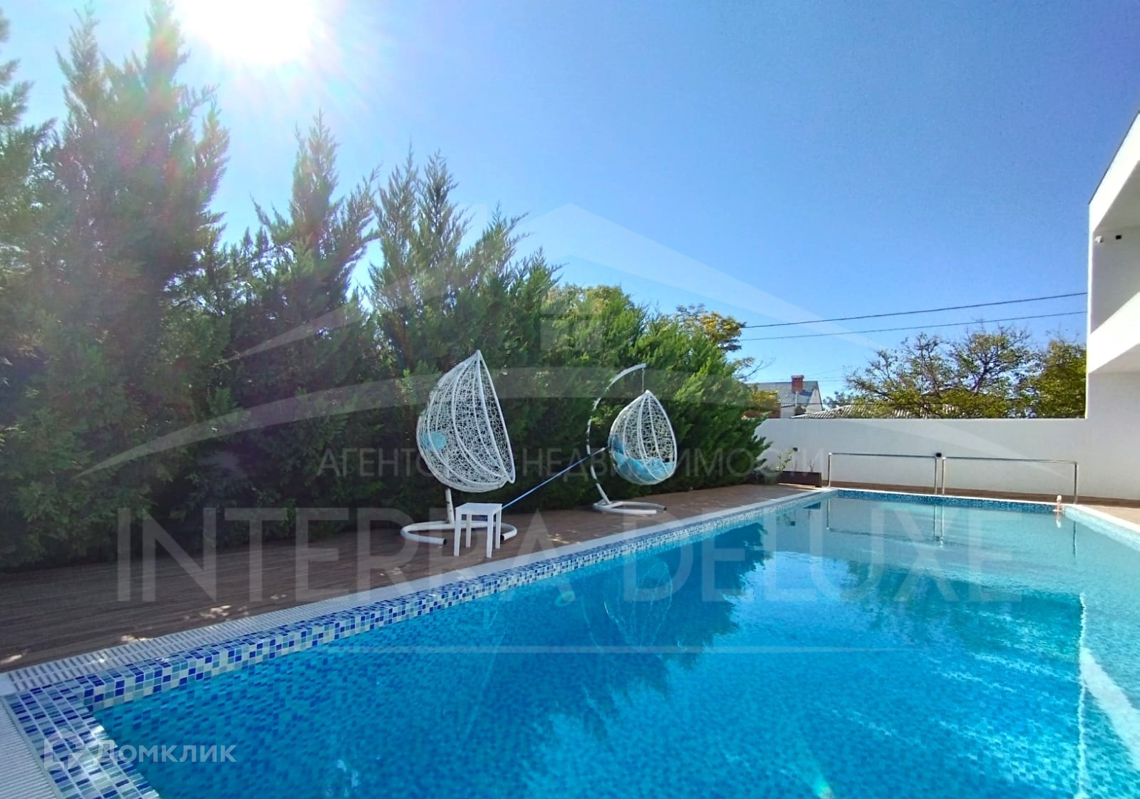- Большой бассейн с профессиональной системой очистки и подогревом воды - длиной 20 м, шириной 4,5 м, глубиной 1,8 м, а также зона отдыха с шезлонгами и качелями