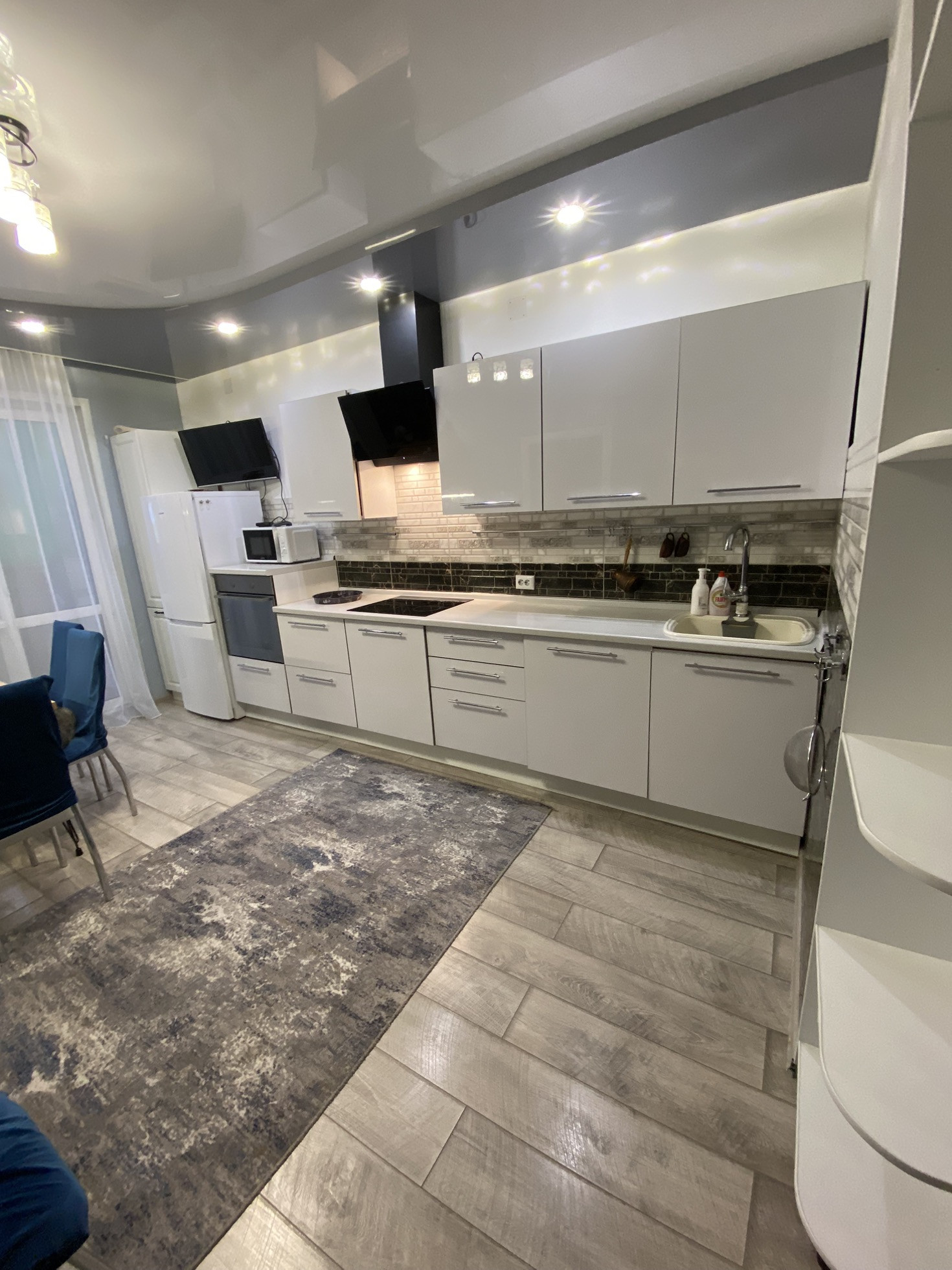 Квартира в идеальном состоянии, оснащен системой «теплый пол», встроенная мебель (кухня, гардеробная), полы ламинат, стеклопакеты, натяжные потолки, плитка Италия! Окна выходят на две стороны!