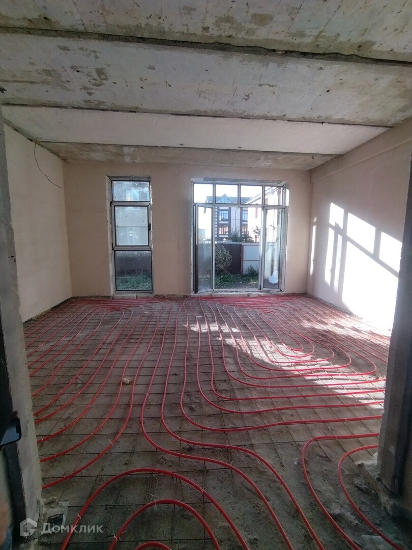 Коммуникации сделаны, все центральное, окна поставлены, теплые полы, водяные от центрального отопления.