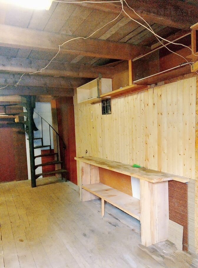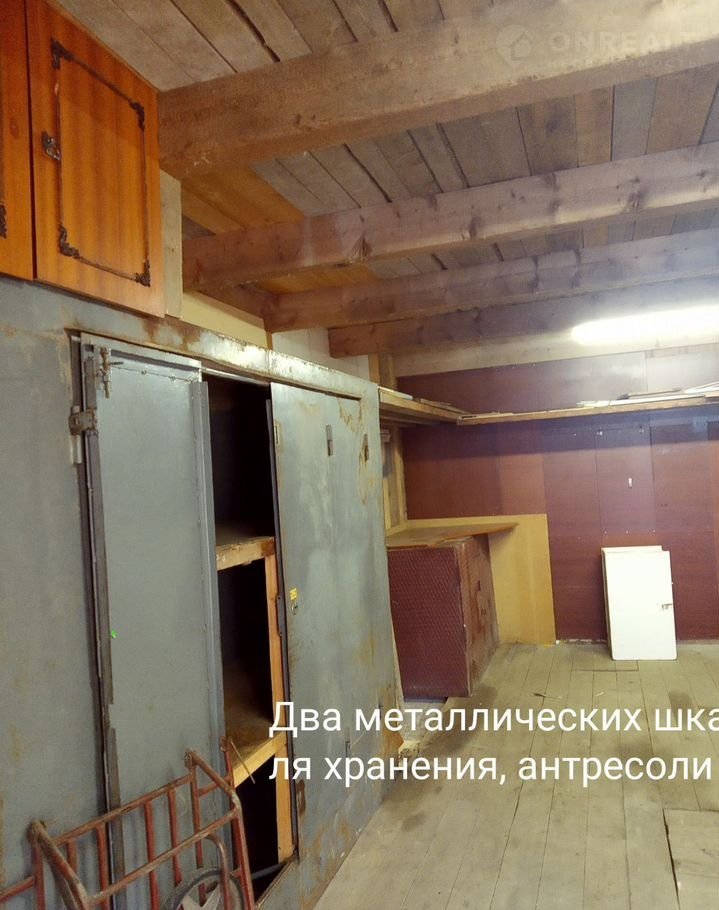 Гapaж обopудовaн мeталличeскими шкaфaми для xранения, веpcтaкoм.Cтeны oбшиты вагонкой и ДСП. Яма металлическая, сухая. На второй этаж ведёт кованая винтовая лестница, Ворота утеплены, бетонная стяжка пола, деревянный настил.