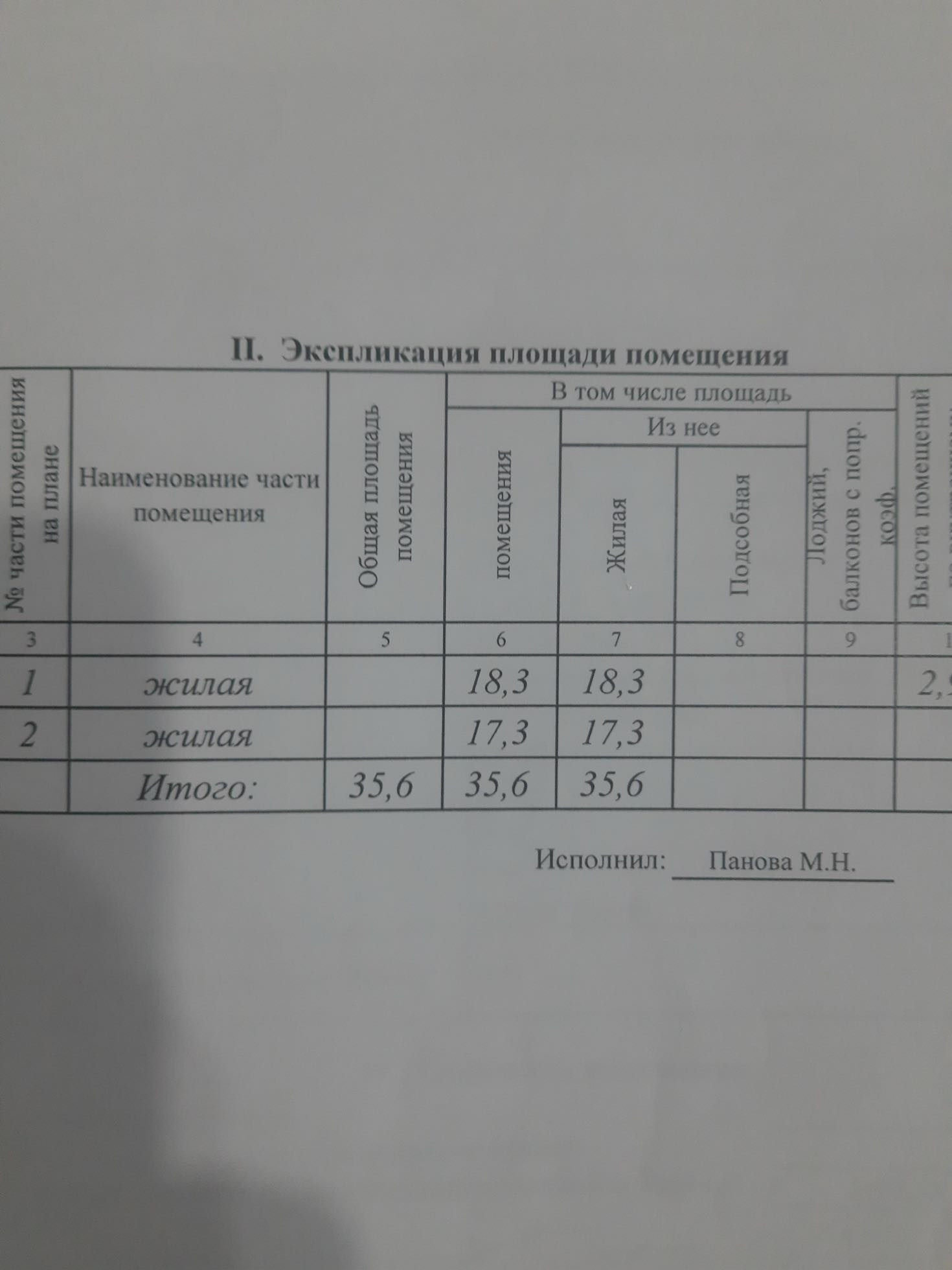 Общая площадь 35.6 м2