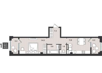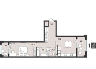 Продается 1-комнатная квартира, 50.1 м2