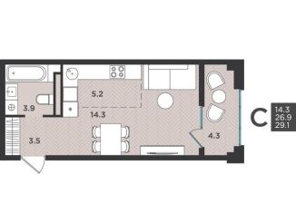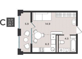 Однокомнатная квартира на продажу, 28.7 м2