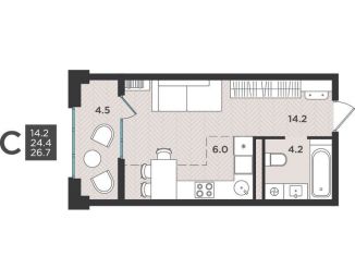 Продается однокомнатная квартира, 26.7 м2