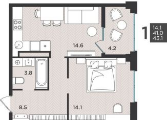 Продажа 1-ком. квартиры, 43.1 м2