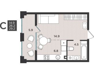 Общая площадь: 29.2 м2
