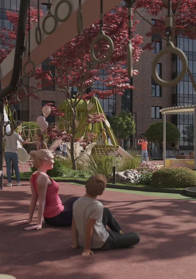 • Закрытая благоустроенная территория: детские площадки с безопасным покрытием, зоны отдыха, спортивные площадки.
