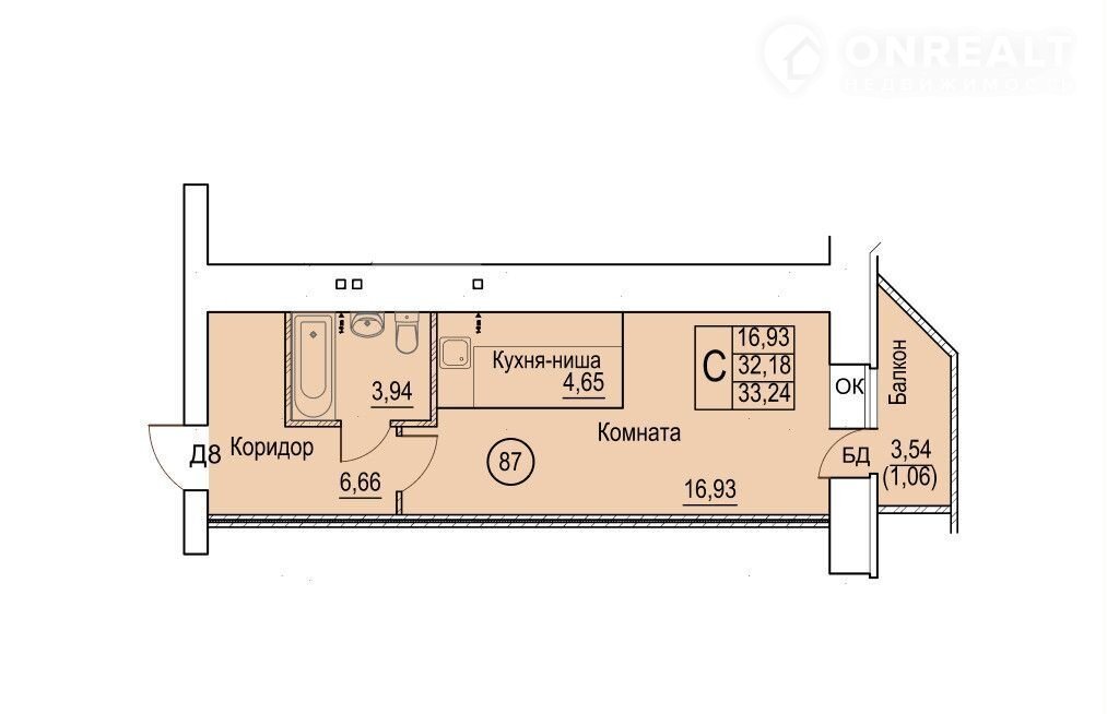 Общая площадь 35.8 м2