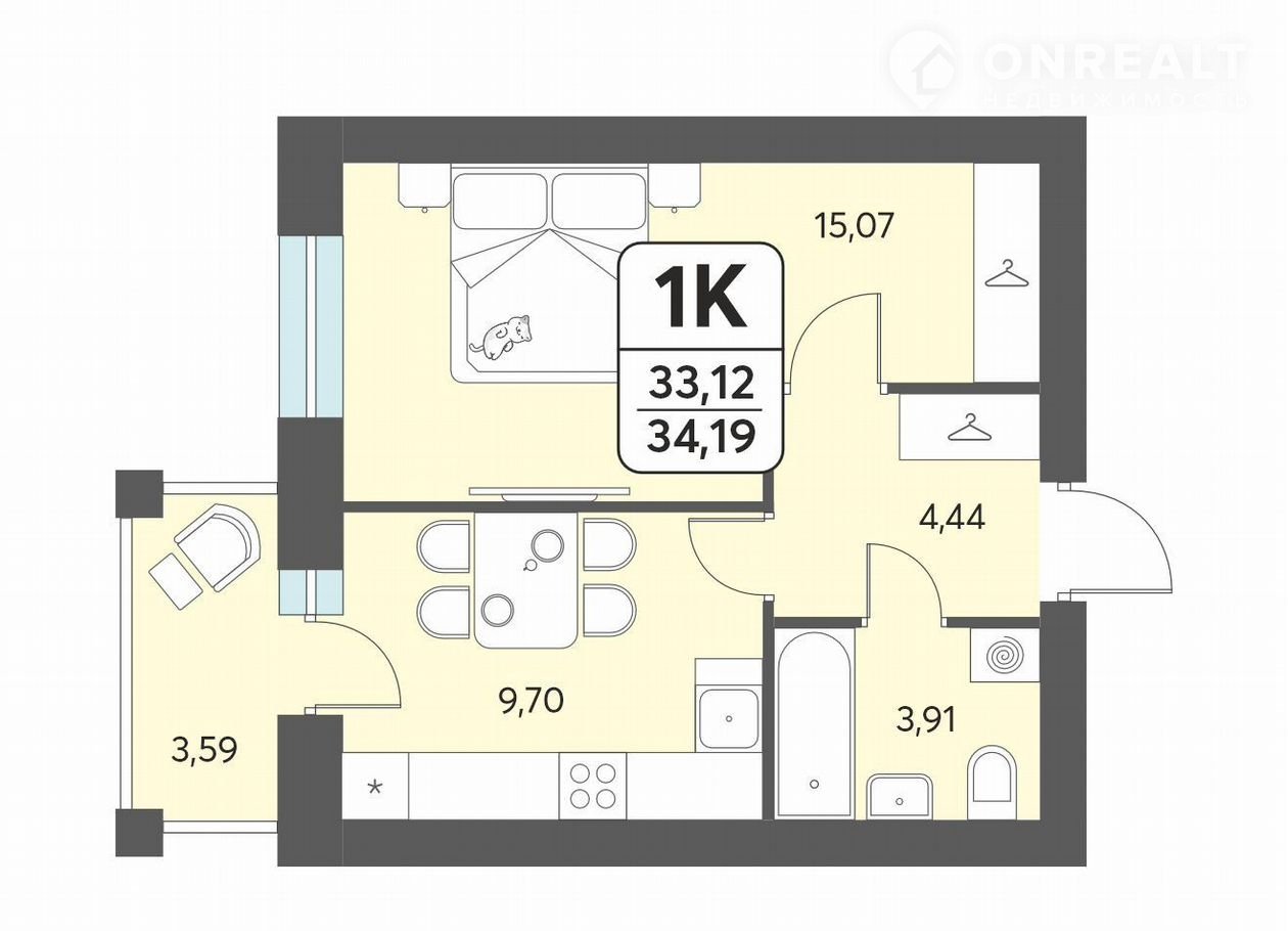 Общая площадь 34.2 м2