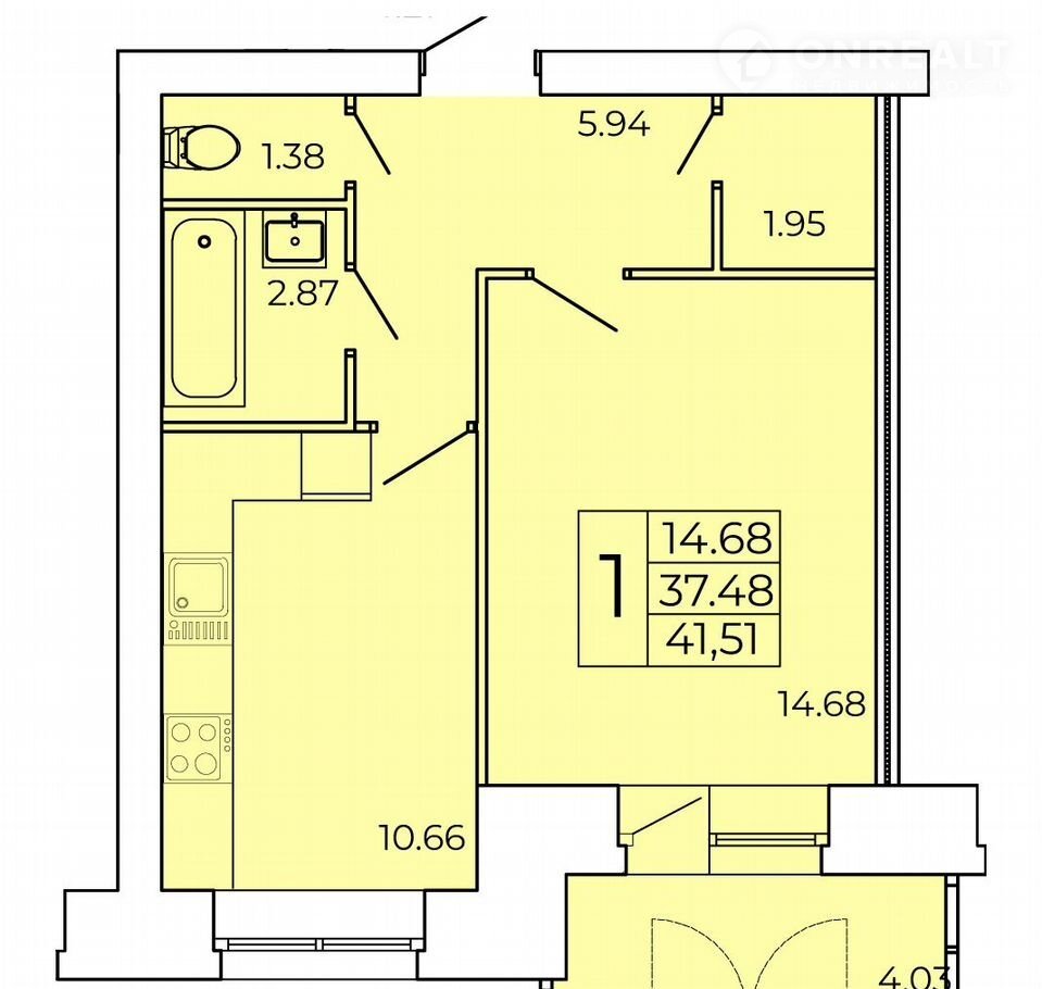 Балкон, лоджия 1 балкон