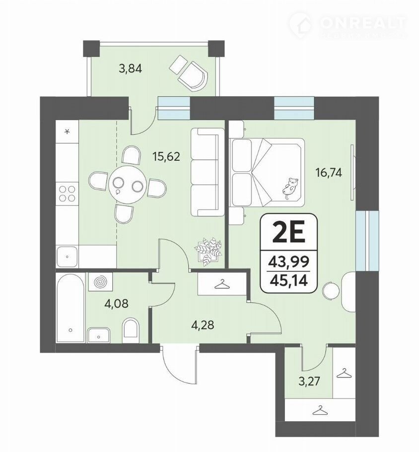 Общая площадь 45.1 м2