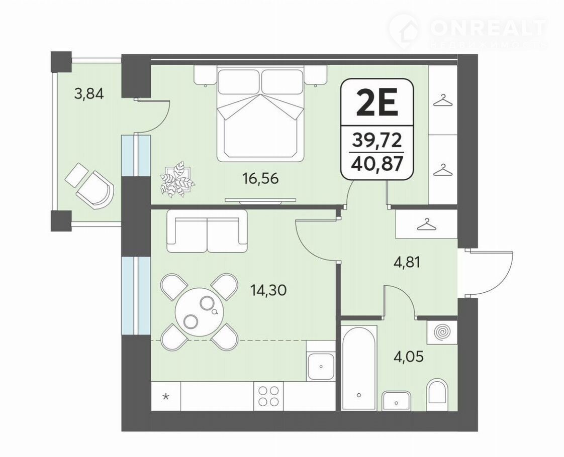 Общая площадь 40.9 м2