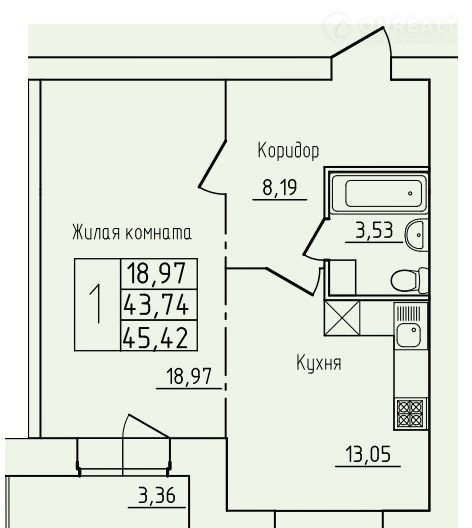 Жилая площадь 19 м2