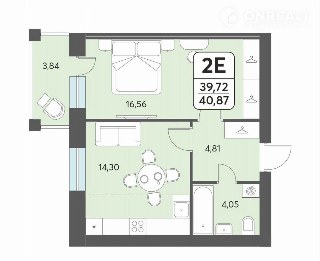 Общая площадь 40.9 м2