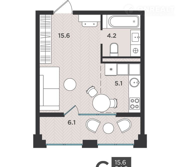 Жилая площадь 15.6 м2