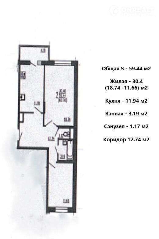 Общая площадь 59.4 м2